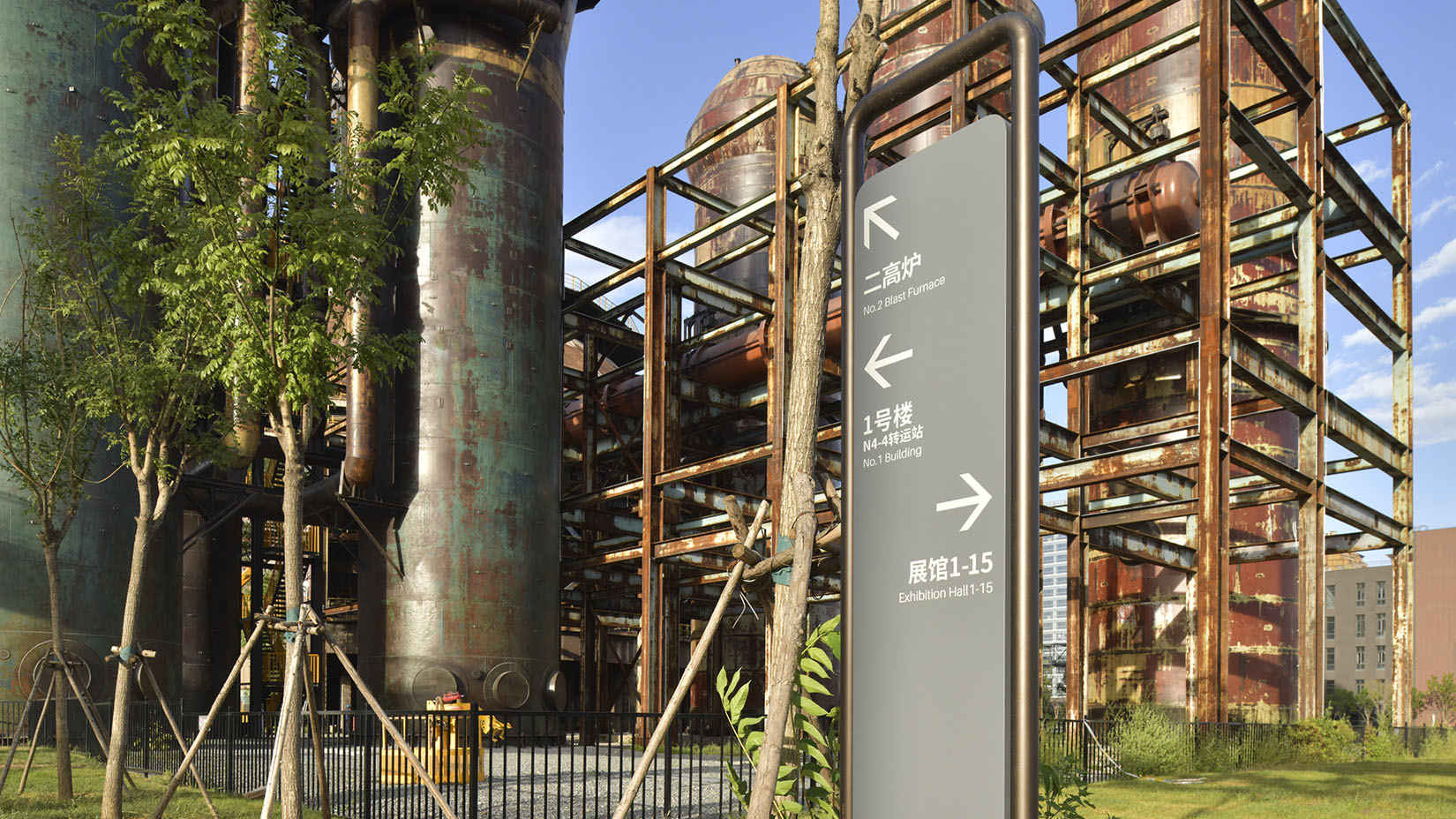 视域承担首钢园的导向系统规划设计工作,以“钢铁传承、直通未来”为设计理念,以发扬首钢精神、传承首钢文化、向世界讲好新首钢故事为设计目标,让新首钢成为具有全球示范意义的新时代首都城市复兴新地标。