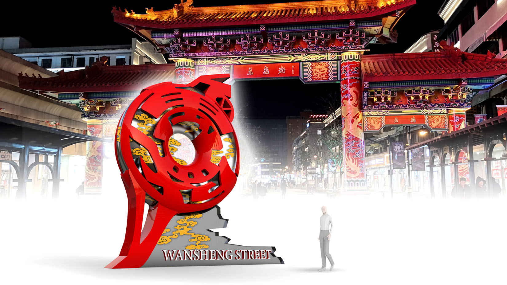 视域承担横店镇区的户外广告系统、景观构筑物系统、城市导向系统及街道家具系统的规划设计工作。设计从研究横店城市文化与区域特色入手,以横店影视工业为基础,梳理形成”横店之梦“的总体概念,通过提炼设计元素,融合创新技术,打造独具横店魅力的一体化城市街道空间。