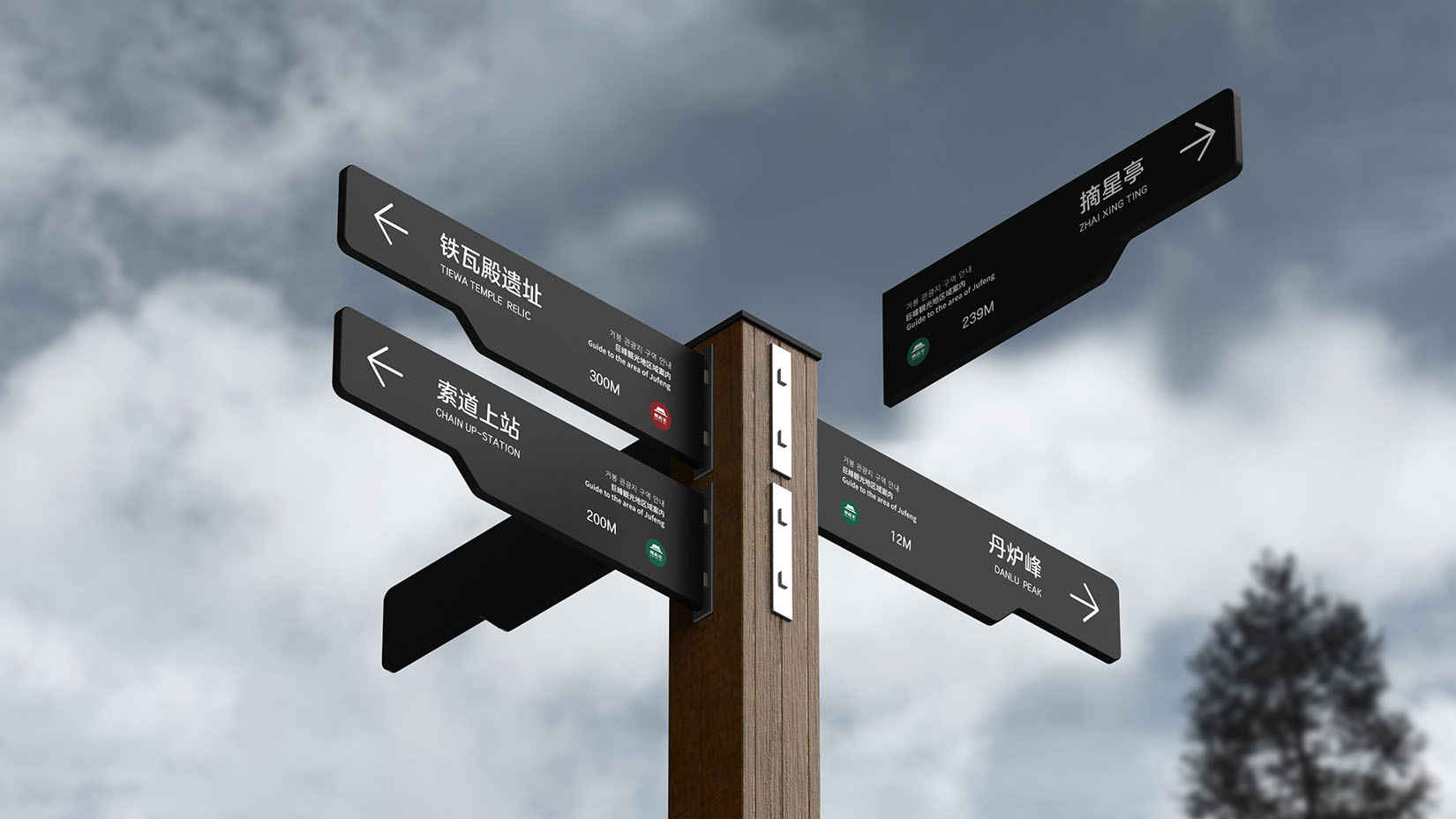 视域承担青岛崂山风景区的导向系统、服务设施系统规划设计工作,设计从项目最具代表性的自然景观“山、云、海”中提取图形作为主体造型,凸显项目生之崂山、海岳崂山、道韵崂山的文化特色,体现其“云海仙山、览石观相”的设计理念。