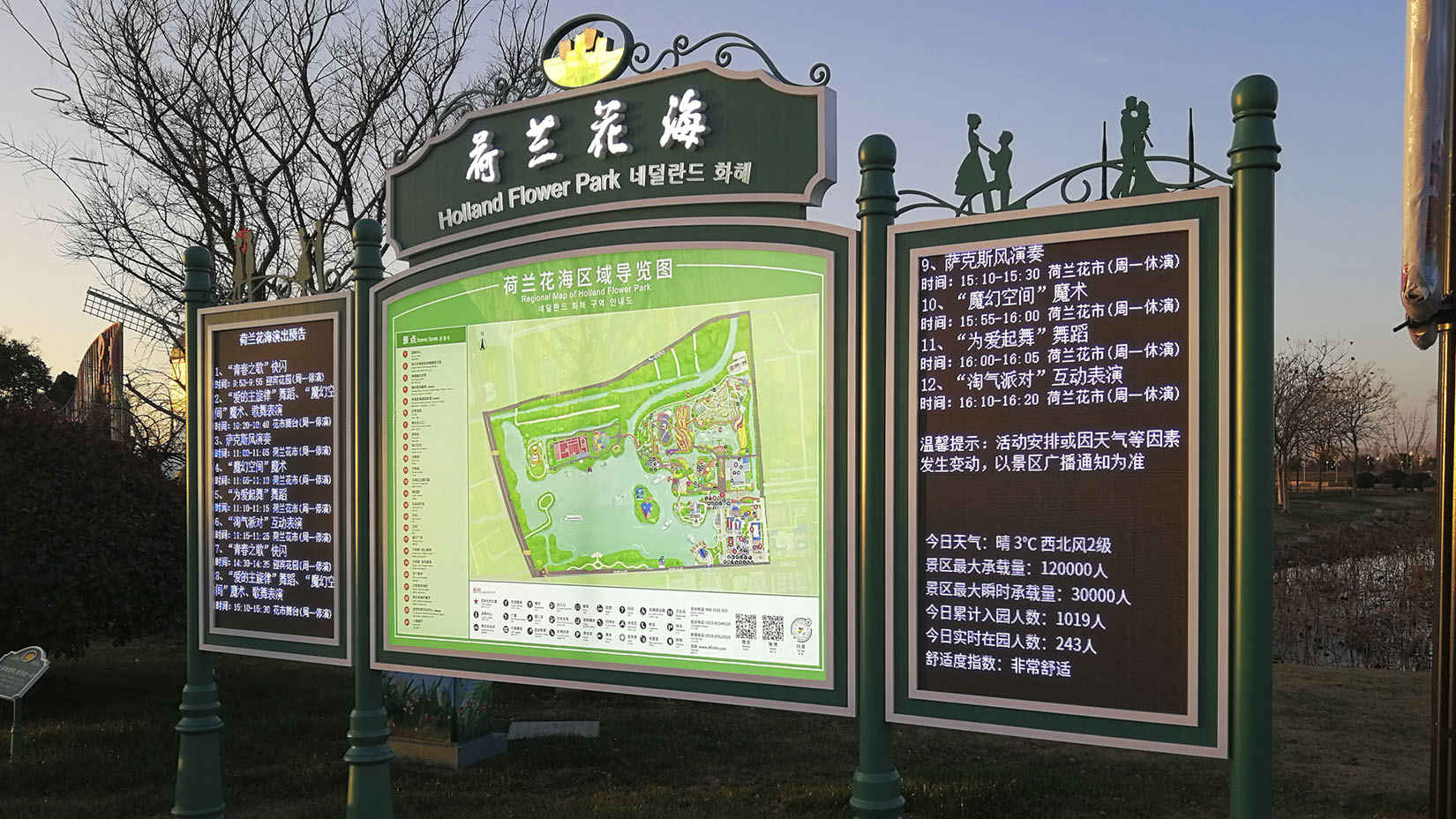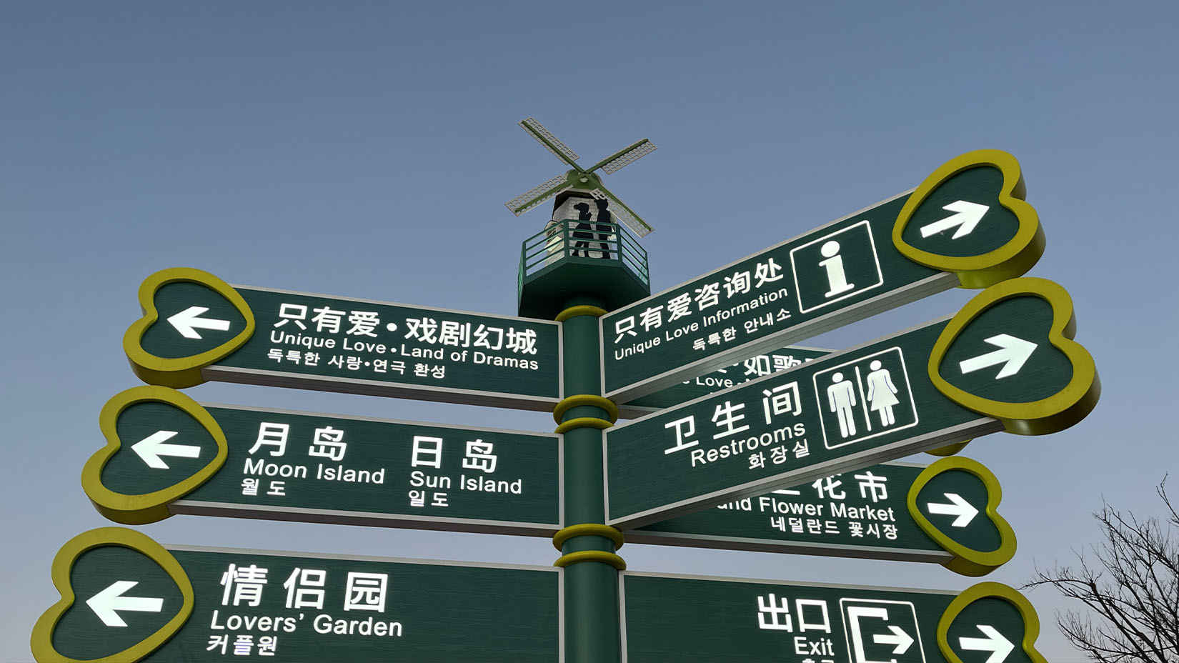 视域承担荷兰花海的导向系统、服务设施系统规划设计工作,设计以贴合环境、融入自然的整体原则,将荷兰特征性的元素通过艺术化的设计手法形成系列造型结构,结合浪漫的爱情瞬间图案装饰,构建世界级荷兰特色、爱情主题的5A级旅游目的地。