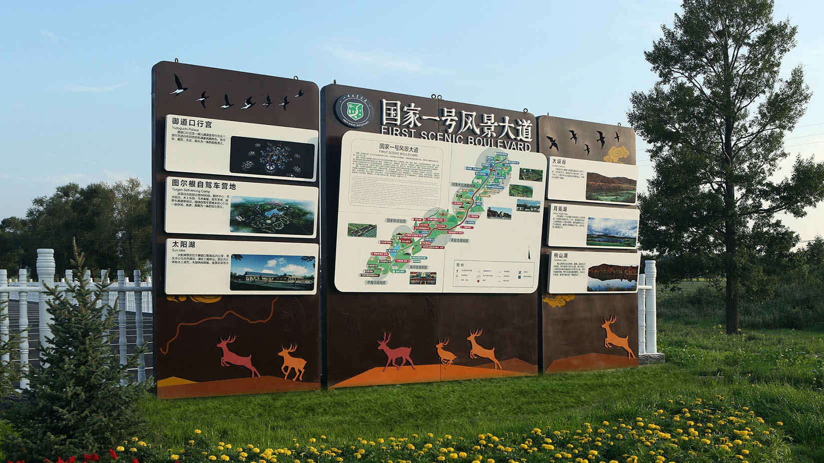 视域承担了国家一号风景大道的大型节点形象标识及导向系统规划设计工作,在国家一号风景大道以设置大型节点形象标识的方式发挥形象传播作用,强化国家一号风景大道的旅游品牌形象,并融合当地传统文化元素,用艺术化的手法打造节点形象标识,增强视觉识别,强化旅游体验。