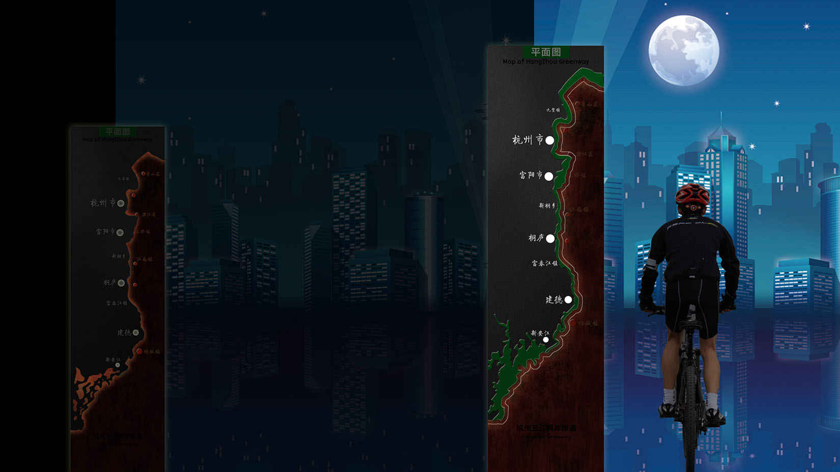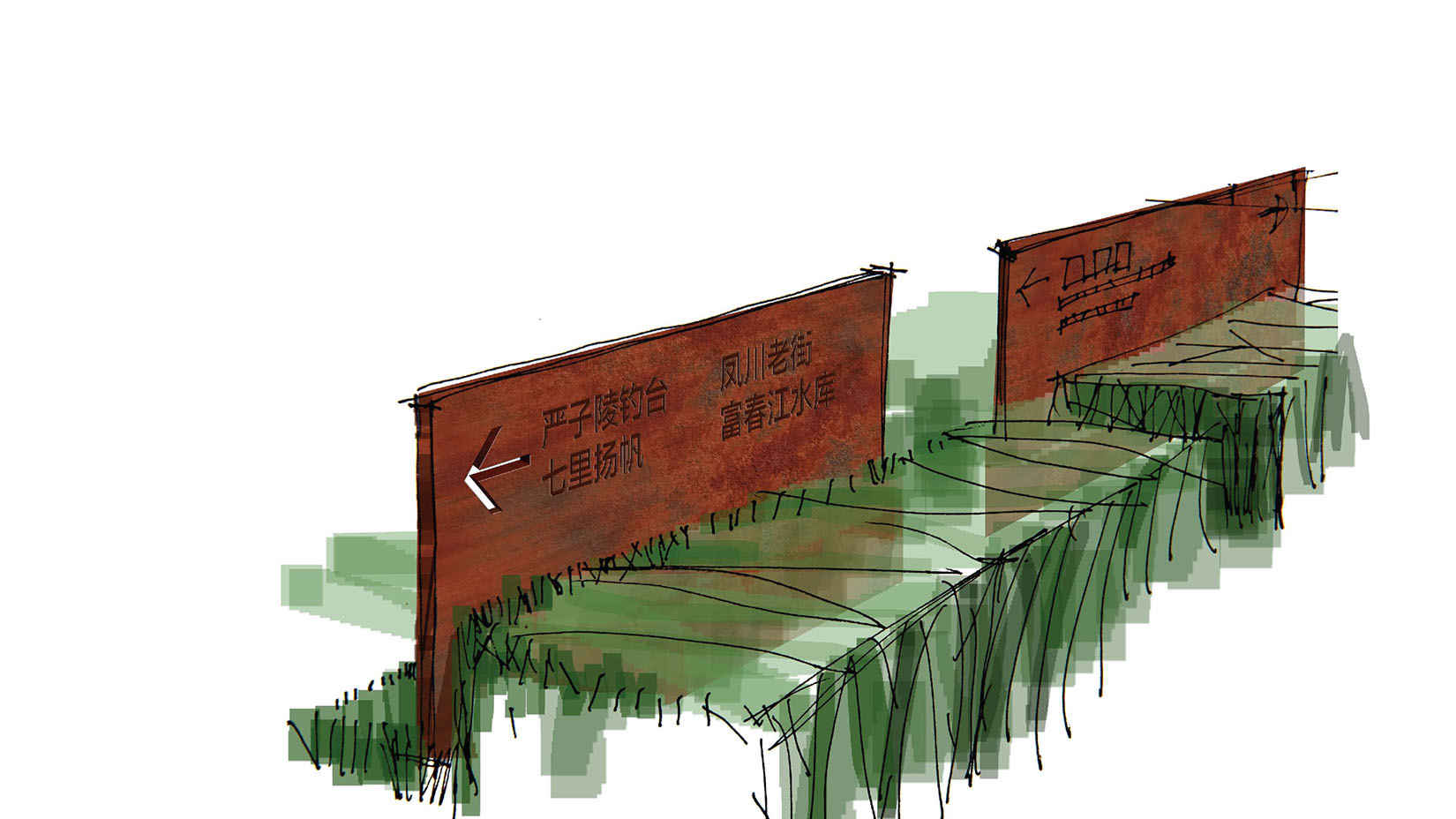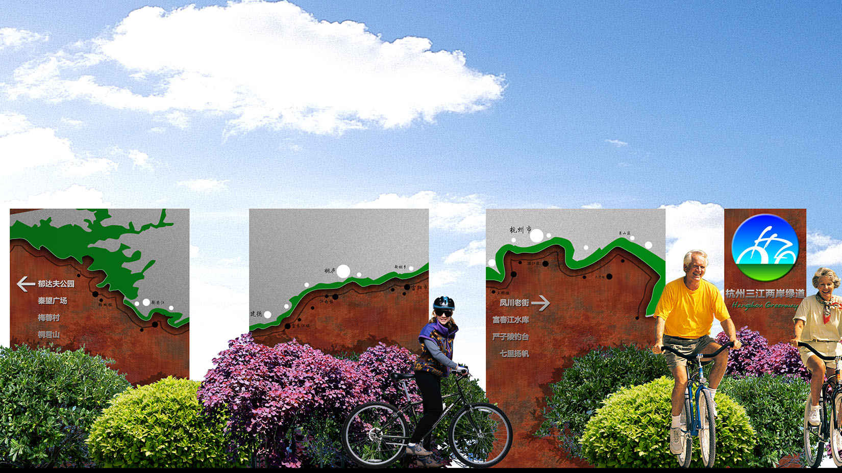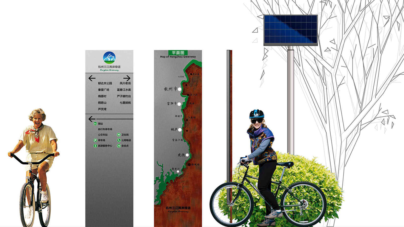 视域承担杭州三江两岸绿道导向系统的标志设计、VI设计以及标识系统建设导则的编制工作。标志及VI设计的主题为“天堂绿道、品质生活、浅草江岸、自由天地”,将城市的诗意精神、历史文脉相契合。标识系统设计根据区位气候采用耐候钢板,形体结合江岸空间的线型、动态的自然景观,构建独具项目属性的设计形态。