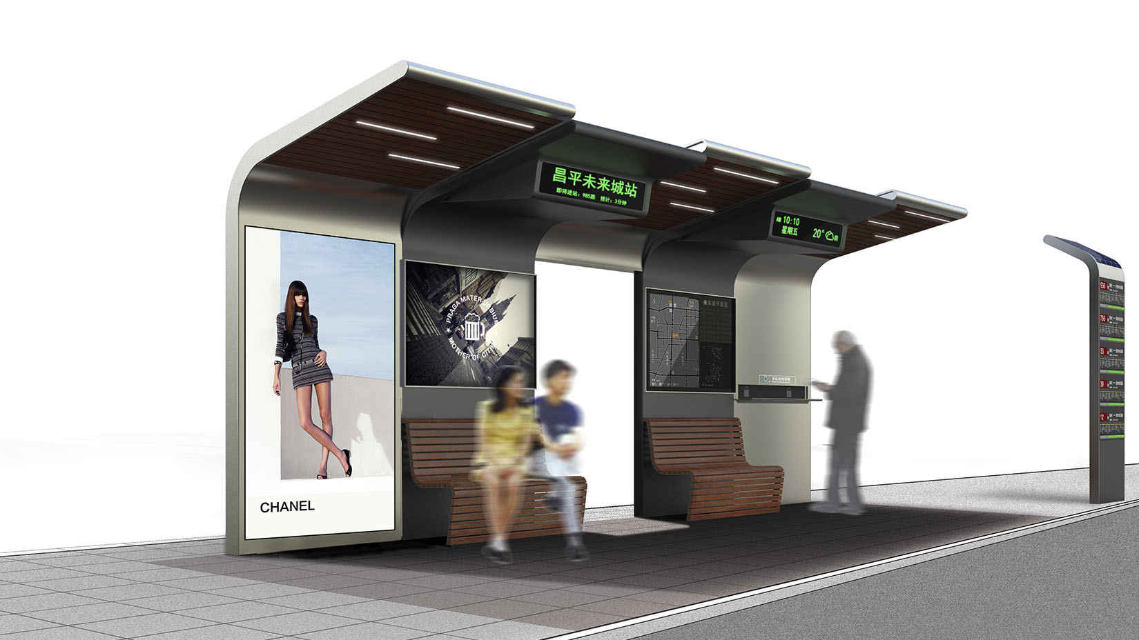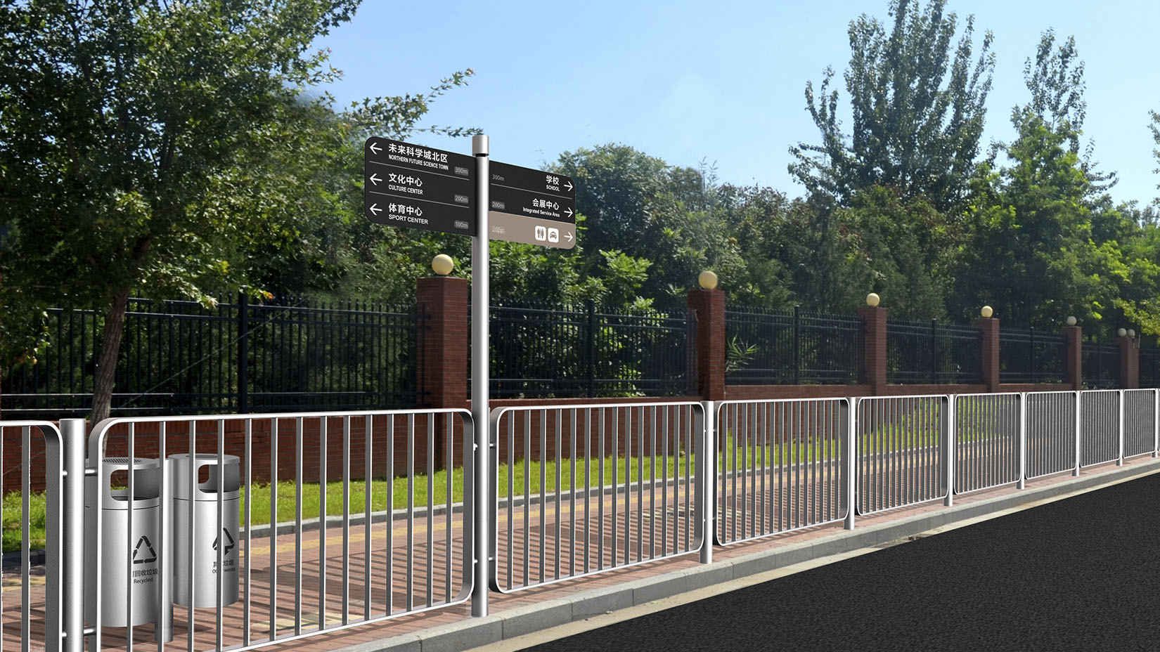 视域承担北京未来科学城导向系统和街道家具系统规划设计工作。城市的发展造就其特有的城市天际线,从而形成最大尺度的感观印象。城市天际线隐含了历史发展过程中的建城理念、人文特点和审美取向。设计以展现城市蓝绿交织、水城共融的生态空间格局为目标,参照《清明上河图》的表现手法描绘城市的未来面貌,表达城市的空间格局和城市肌理,以特色化的图形图像丰富城市环境设施的美学内涵和视觉形象。