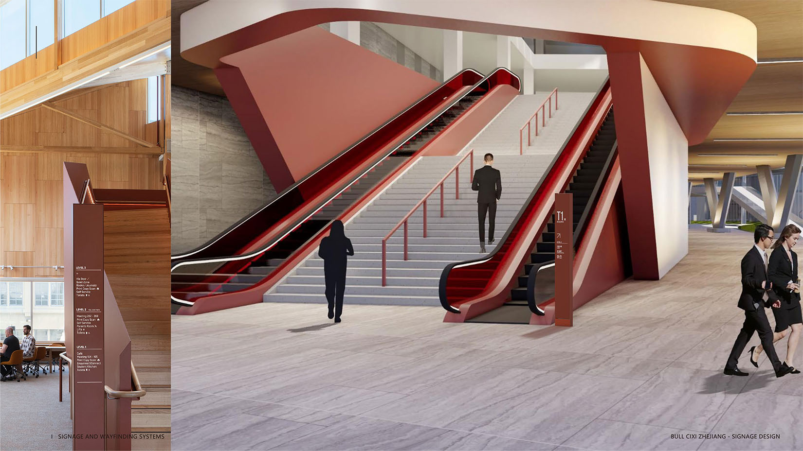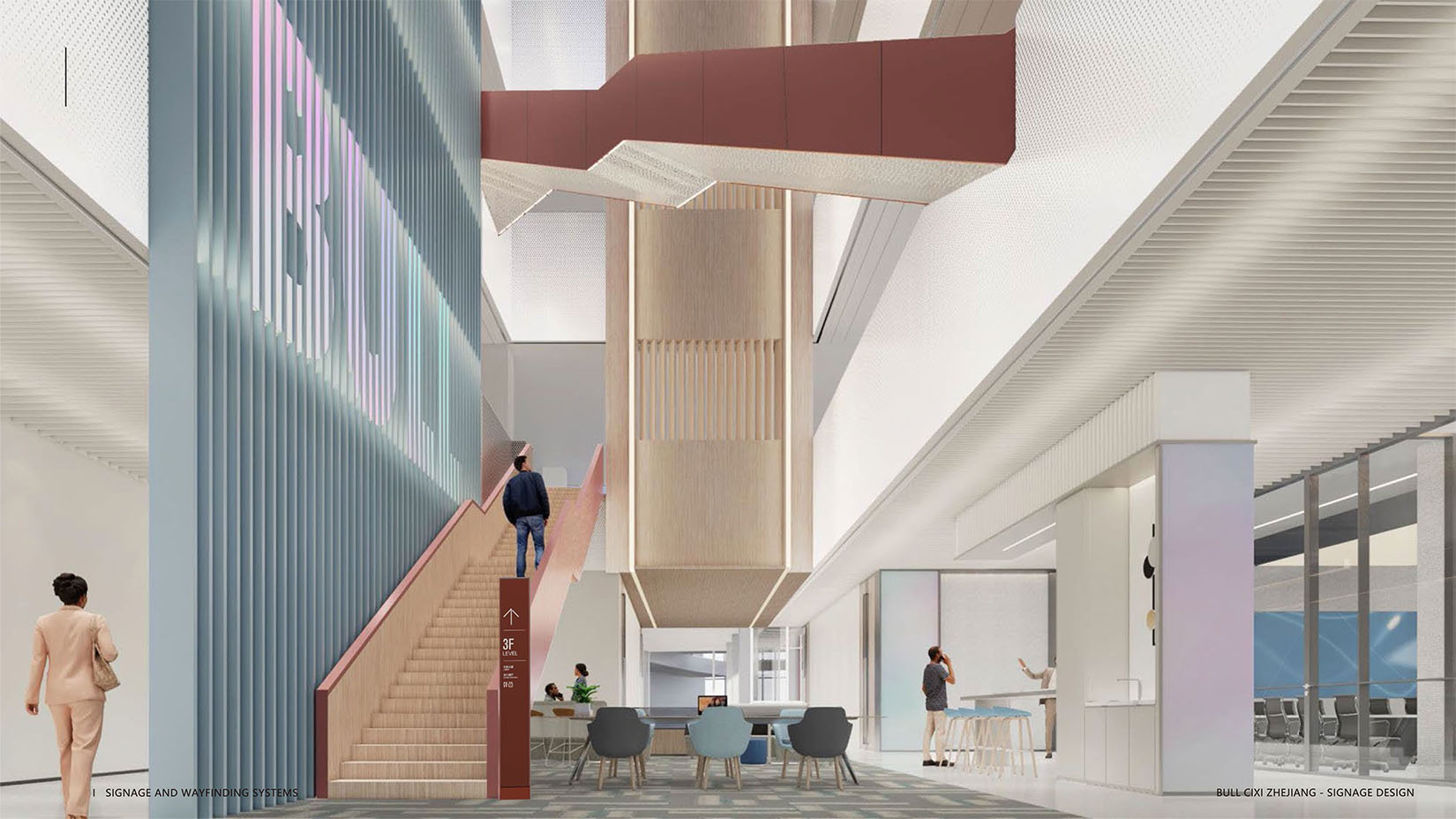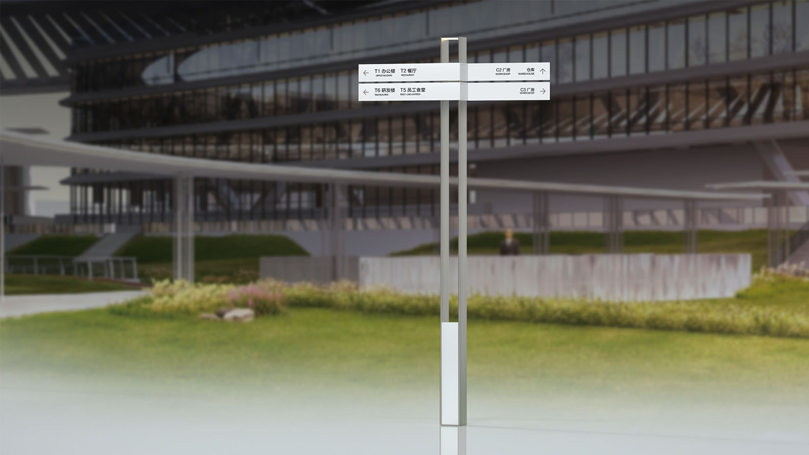 视域承担慈溪公牛产业园的导向系统规划设计工作,以建筑“雅致明快、通透大气“的视觉基调为灵感来源,整体采用轻悦淡雅的色调,既彰显总部建筑的恢弘气势,又传递出高端办公空间的从容质感。设计以“清雅具构、大道至简”为核心理念,从园区环境中提炼“气韵淡雅干练”的视觉符号,通过标识系统的形态设计与材质选择,将“卓越品质“的企业精神转化为可感知的空间语言,使访客与员工置身园区时,既能直观感受总部的现代气场,又能在细节处体会到人文关怀与设计美学的融合,打造具有标杆意义的高端产业园区。