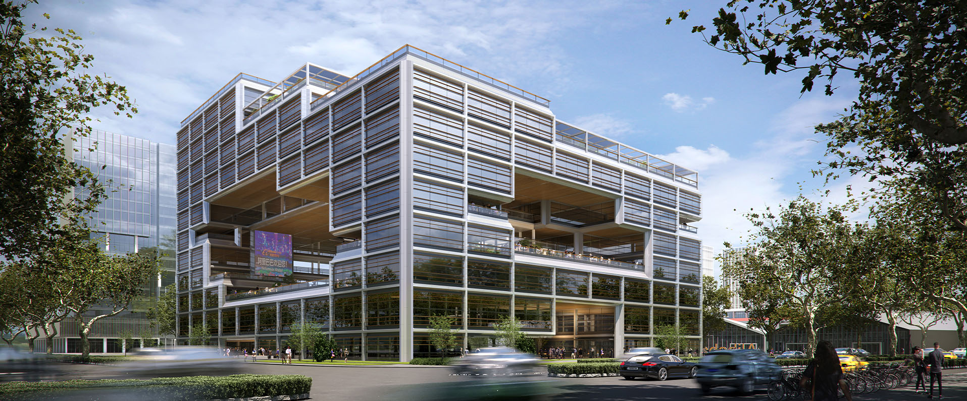 阿里巴巴上海总部位于上海市徐汇滨江地区,总建筑面积6.4万平方米,建筑高度56.3米,地上11层,地下3层,整个建筑形态运用了AI遗传算法,该技术也是建筑领域的首次应用。阿里巴巴上海总部聚合淘宝、天猫、阿里云等核心业务团队办公,建筑呈现三面镂空的透明盒子造型,最大悬挑跨度达52米,通过智能遮阳系统与屋顶花园实现绿色生态目标。
