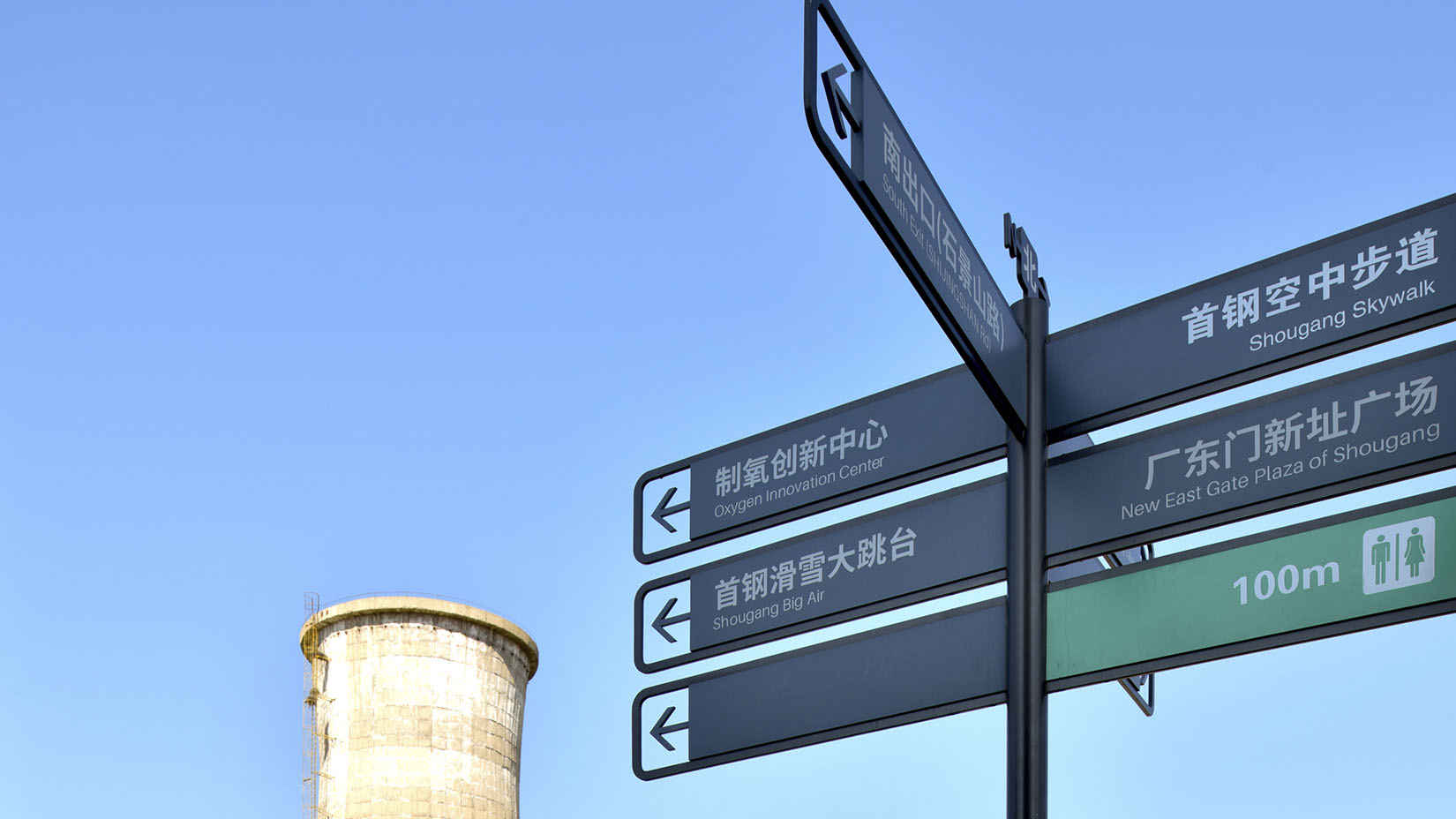 视域承担首钢园的导向系统规划设计工作,以“钢铁传承、直通未来”为设计理念,以发扬首钢精神、传承首钢文化、向世界讲好新首钢故事为设计目标,让新首钢成为具有全球示范意义的新时代首都城市复兴新地标。