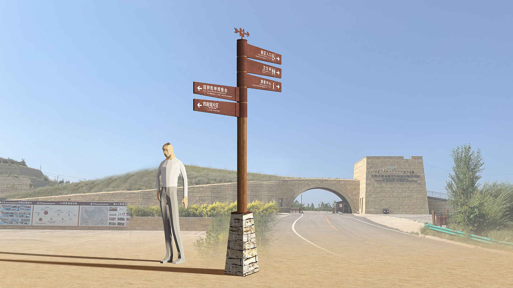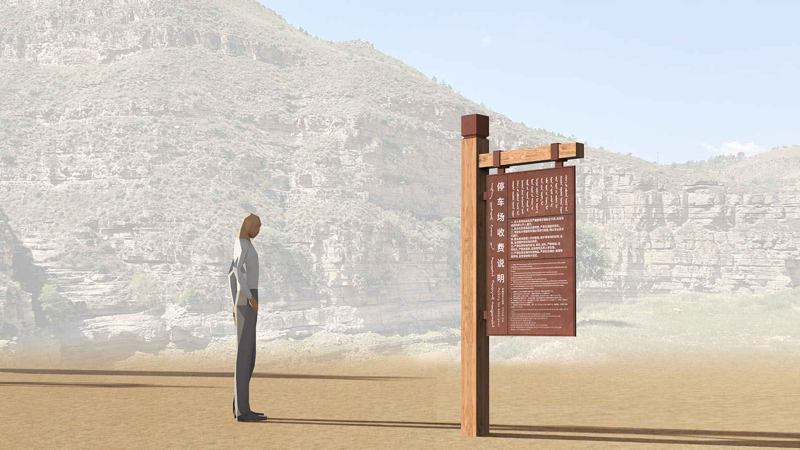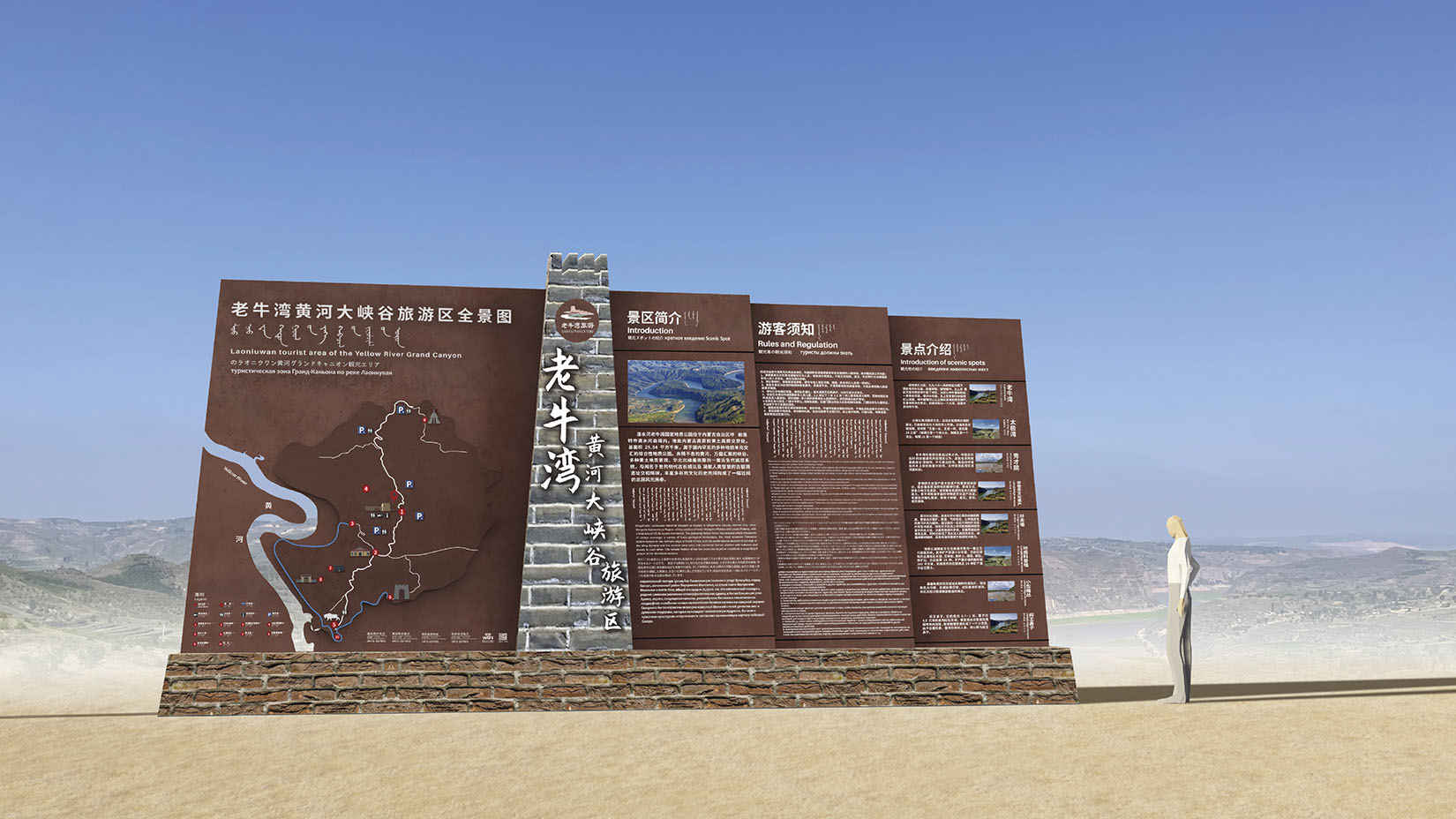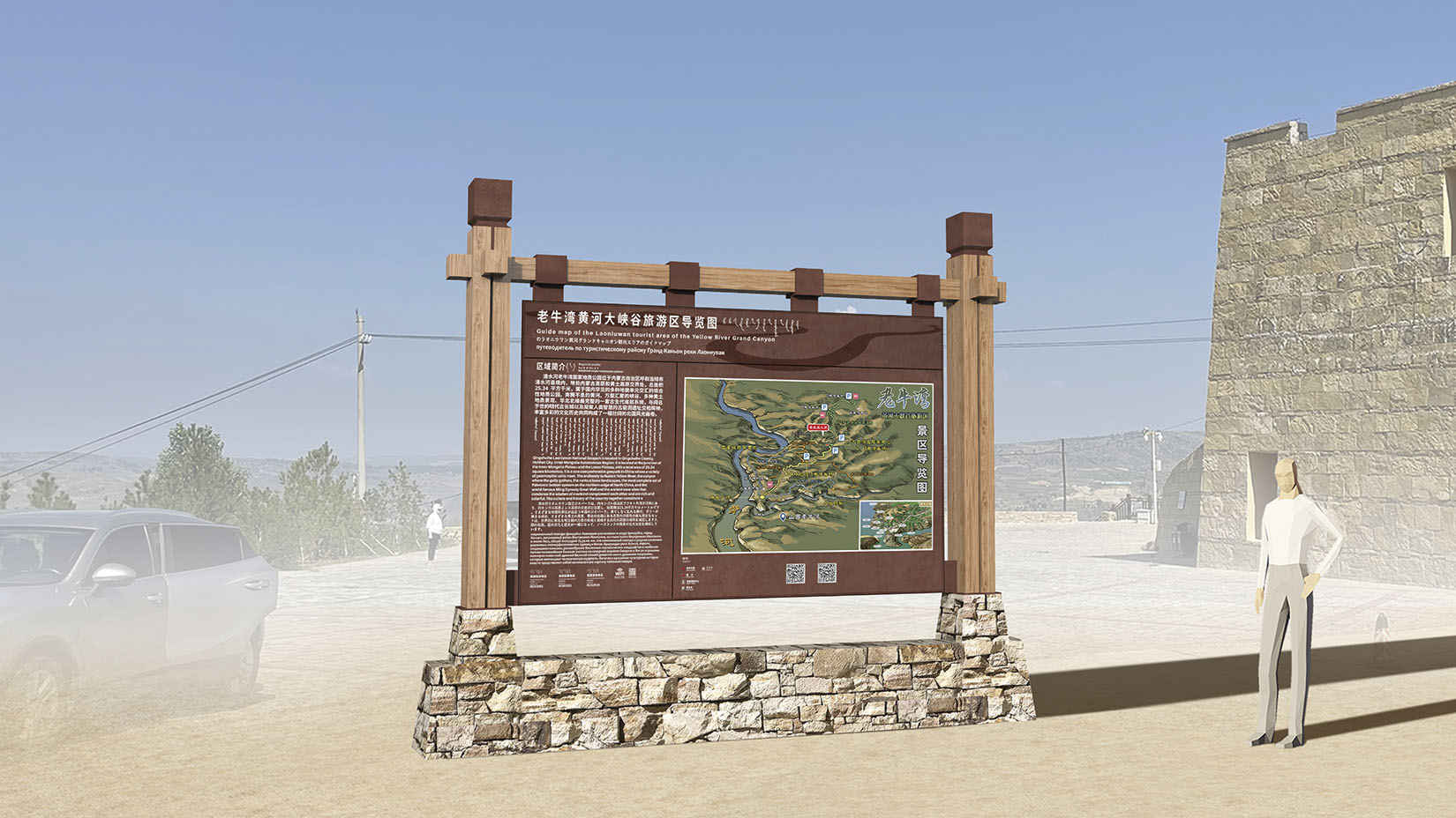 视域承担老牛湾黄河大峡谷旅游区的导向系统规划设计工作,以取其魂、延其意、传其神的宗旨,提取了黄河轮廓外形元素,将黄河的宏伟化为独特的视觉符号,质朴的造型设计融入了黄河文化的厚重感,完美的与空间融合,提升了项目的观赏性。