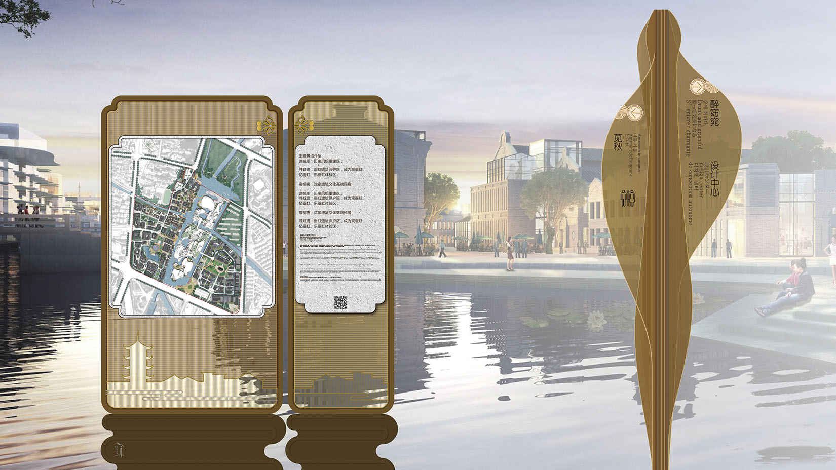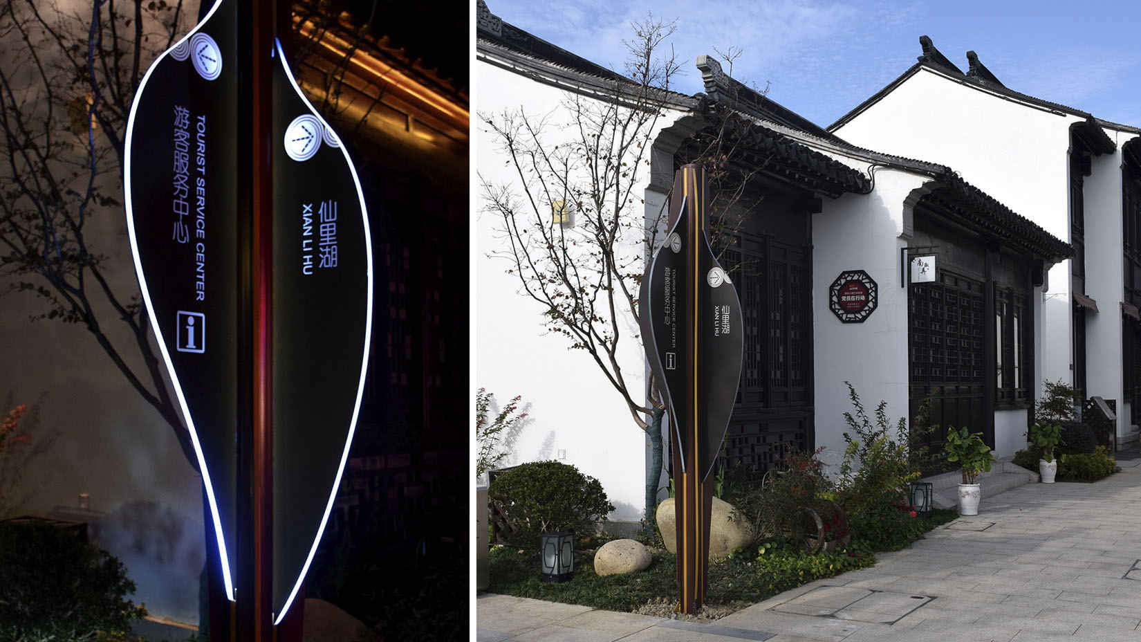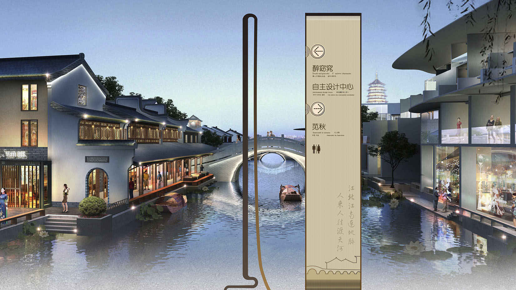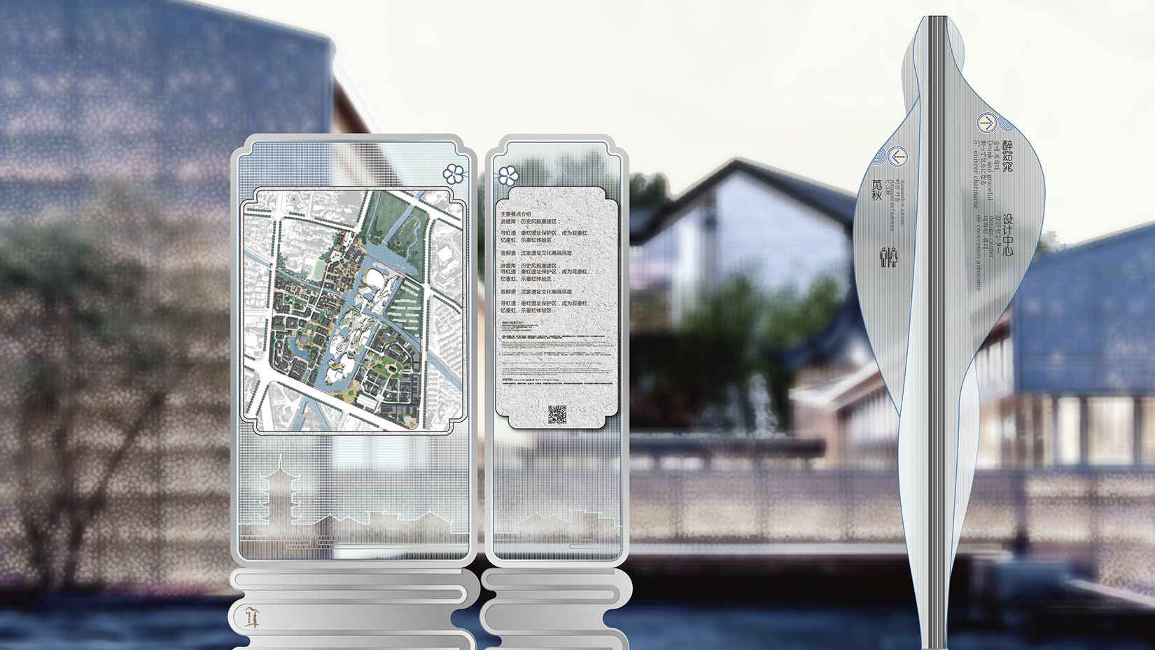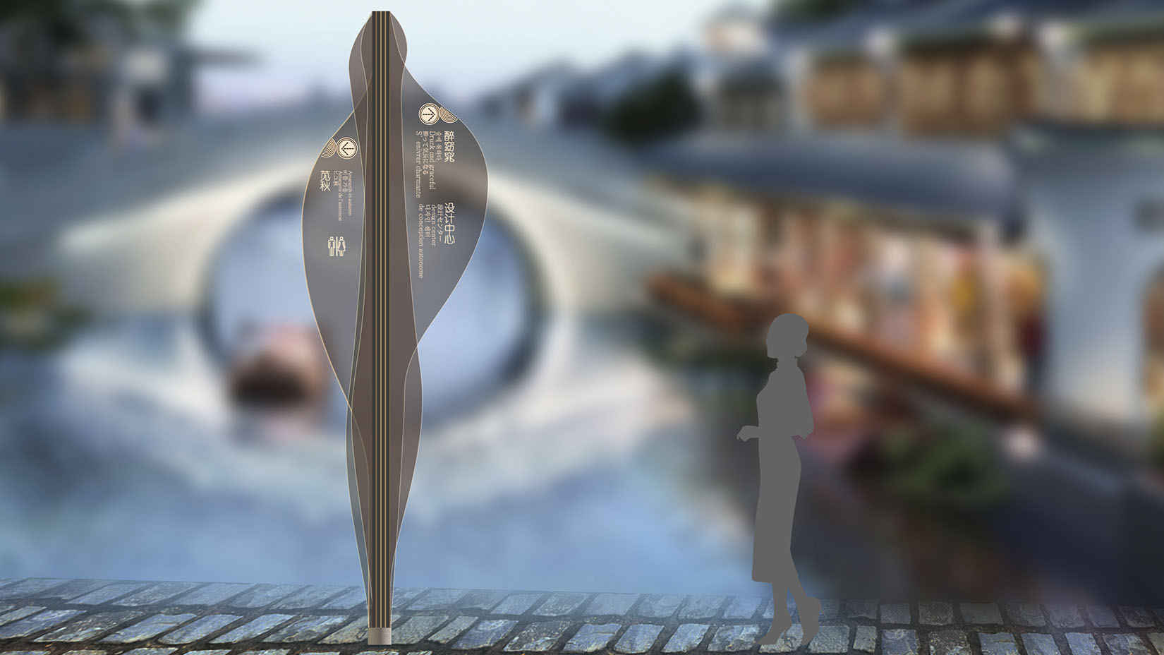视域承担旗袍小镇的导向系统规划设计工作,融合了旗袍文化、江南文化、垂虹文化三种主要文化属性,装饰吴江最美天际线和旗袍特色元素,三个功能分区在统一的造型基础上进行材质、图案、颜色细节的区分,体现极具匠心的工匠精神。