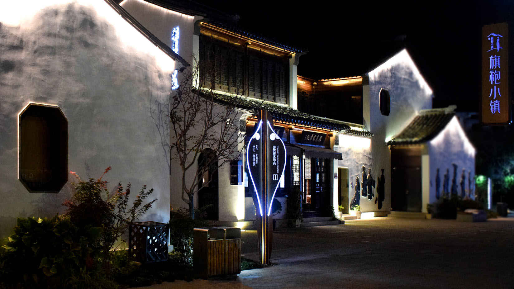 旗袍小镇占地580亩,总投资60亿元,打造以旗袍为主题,融合中华传统服饰文化、丝绸文化、国学文化、禅修文化、垂虹文化于一体的文化传承小镇,主要划分为古典区、国际区和摩登区三个功能分区,三个分区各具建筑风格的同时,也体现了苏绣•旗袍、现代•旗袍、海派•旗袍的文化定位。