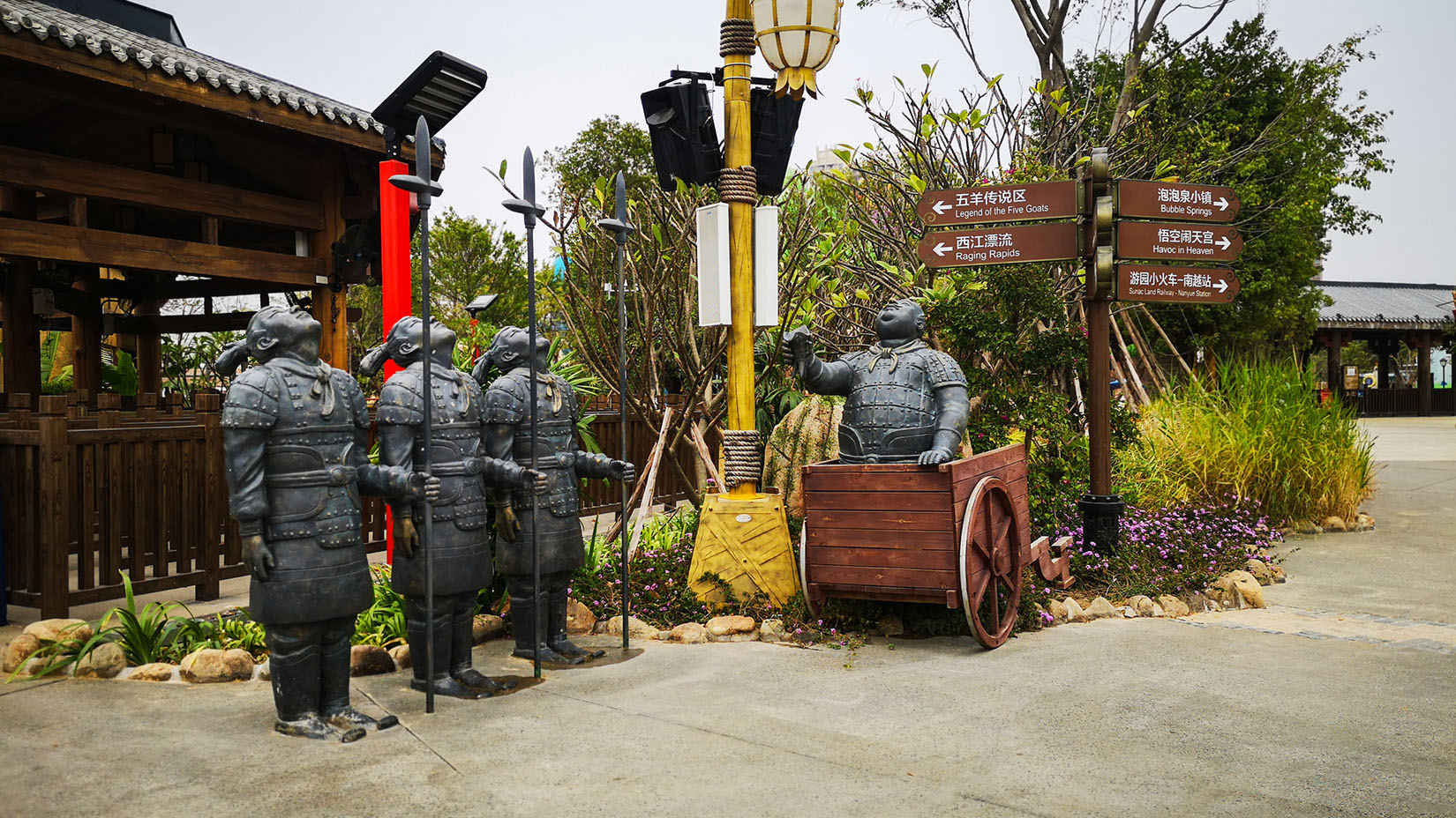 广州融创乐园占地59.6万平方米,园内设有千年商都、海上丝路、岭南印象、南越古国、五羊传说、梦幻花园6大主题园区,是集传统文化元素与奇幻冒险氛围为一体的世界级主题乐园,整个乐园将体现广州传统历史与文化艺术交融的主题氛围。