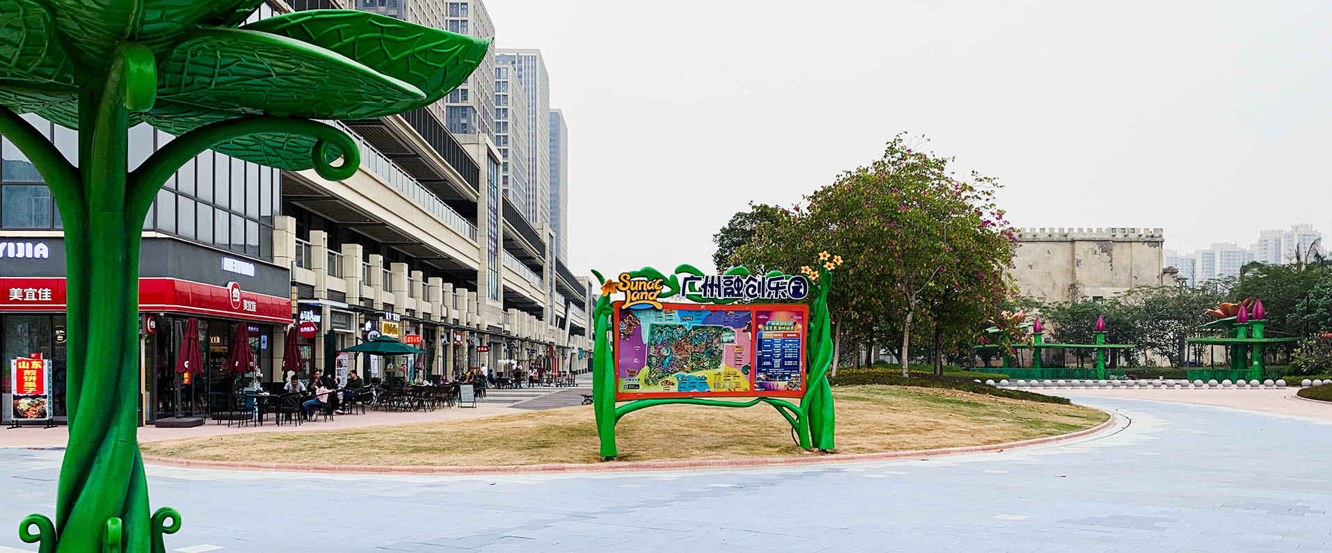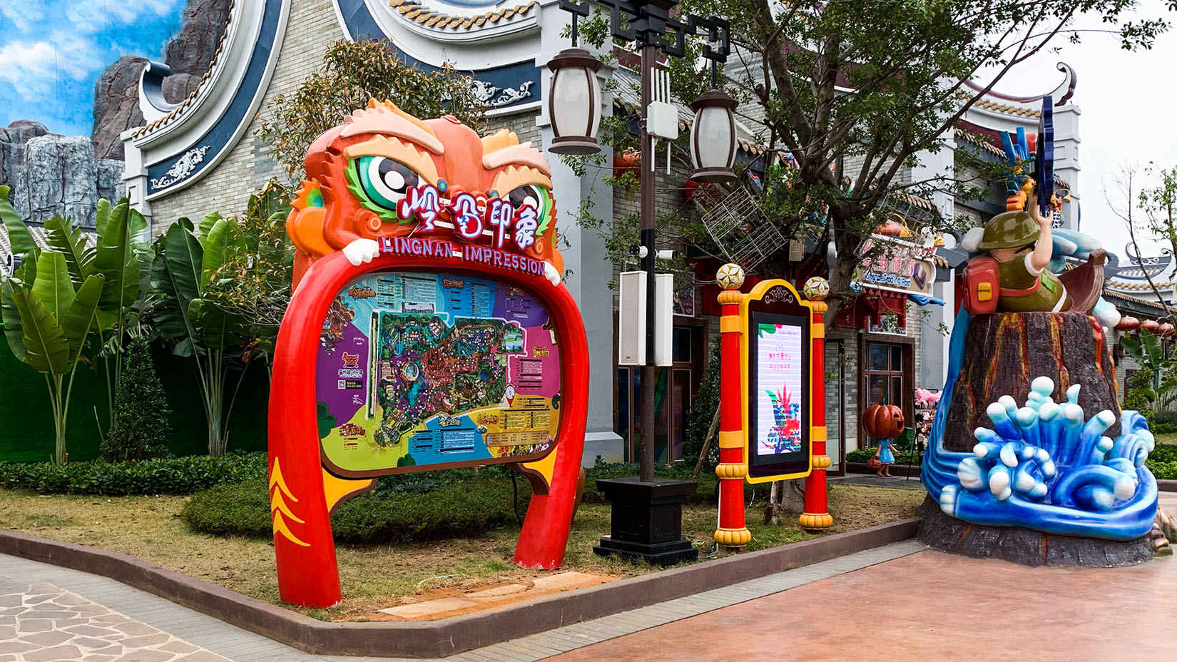 视域承担广州融创乐园的导向系统规划设计工作,设计充分解读各个功能分区的故事线,让设计与分区主题、包装效果、景观更加融合,打造空间一体化的导向系统设计方案。