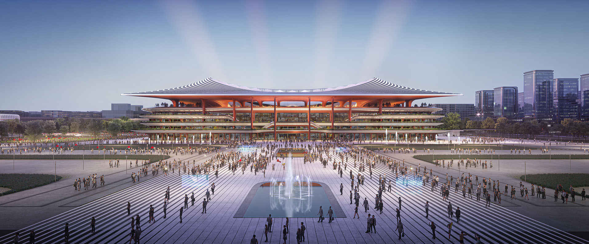 西安国际足球中心位于西安新中心新轴线核心位置,西咸新区沣东新城复兴大道以东,占地约280亩,总建筑面积25万平方米,包含1座60000座位的专业足球场、2块国际标准室外训练场,是按照国际足联和亚足联最新标准设计建造的一座甲级专业足球场馆,能够承接除世界杯开幕式以外的所有国际A级足球赛事。项目由英国扎哈•哈迪德建筑事务所联合香港iDEA担任方案设计,将西安建筑方正、恢弘的历史文化底蕴和专业足球场动感、时尚、活力的特色完美融合,重新诠释了建筑与文化的完美呈现。