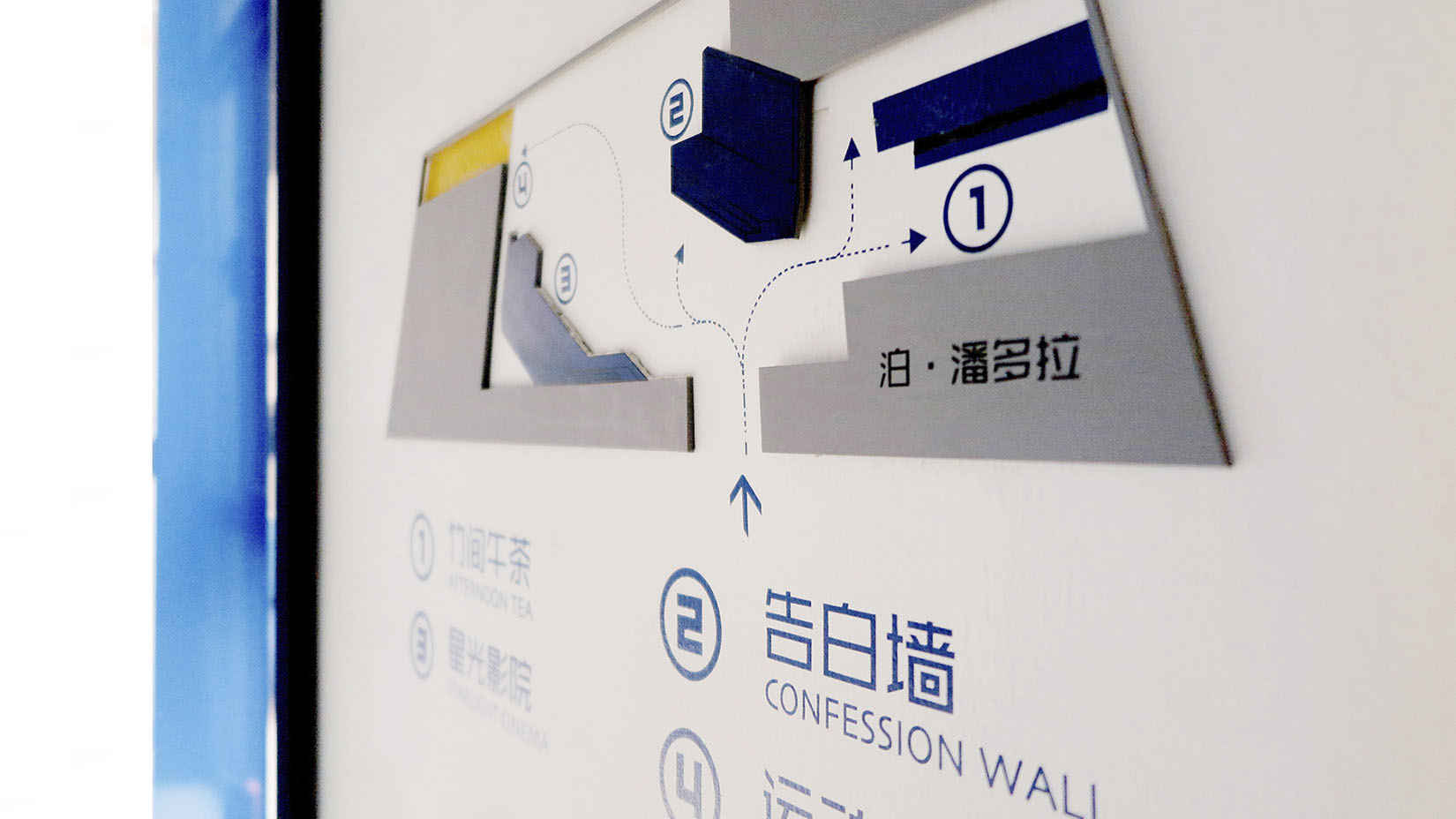 视域承担北京西直门泊寓的导向系统规划设计工作,设计以“潘多拉魔盒”为主题,呼应建筑的整体风格,采用立柱堆叠造型和镂空的处理手法,提升设计的品质与格调。颜色鲜艳的魔盒,对追求时尚的年轻人有着无限的吸引力,满足年轻人对于高颜值生活的希望。