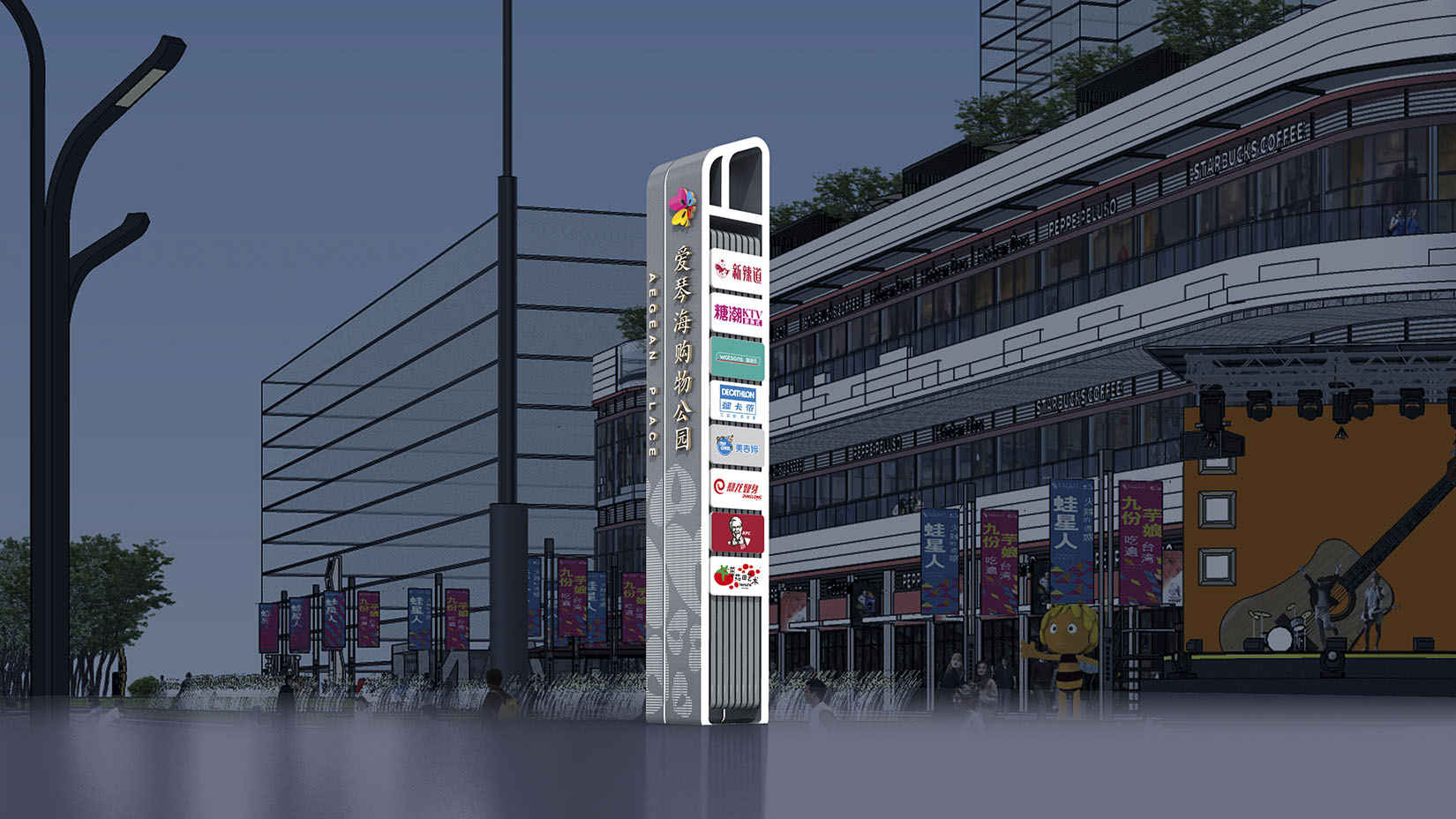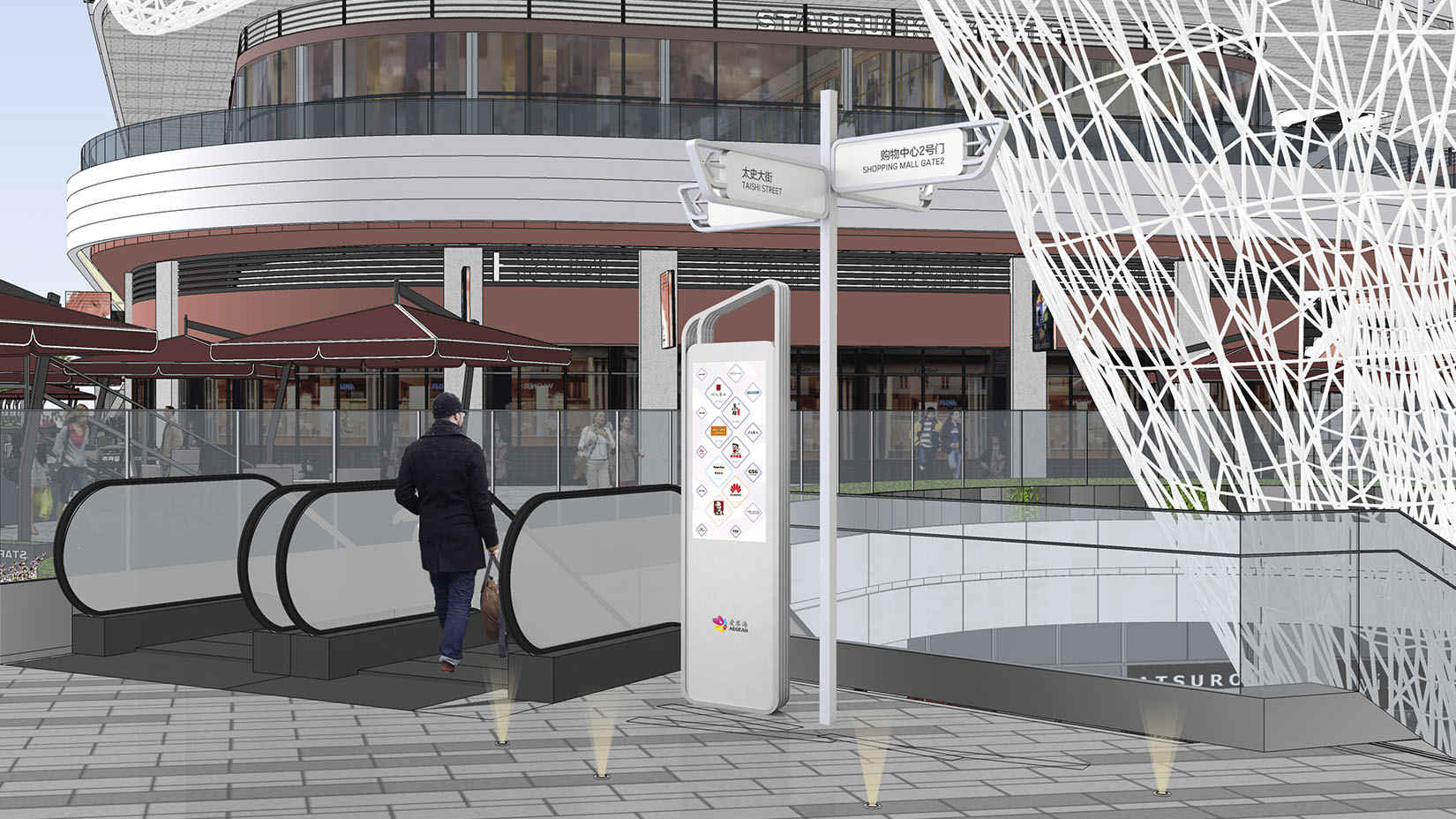 视域承担韩城爱琴海购物公园的导向系统规划设计工作,标识设计以“进贤冠,进贤贤哉”为概念来源,以现代元素为形,历史传承为骨,通过简洁的外形、流畅的曲线、细腻的材质进行打造。