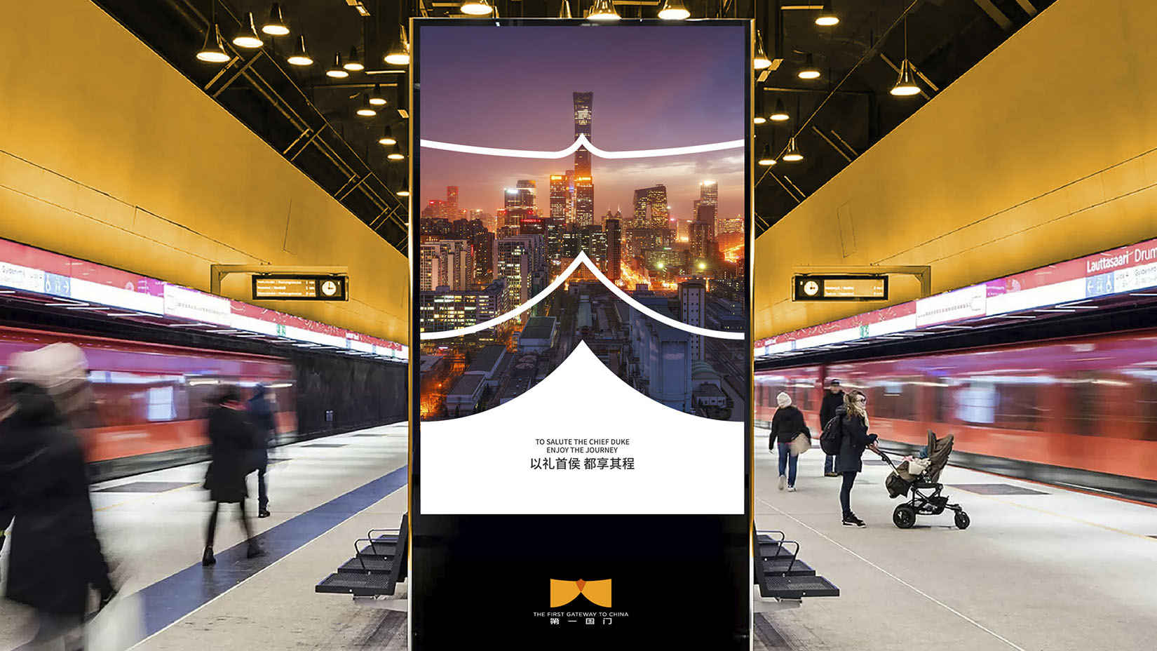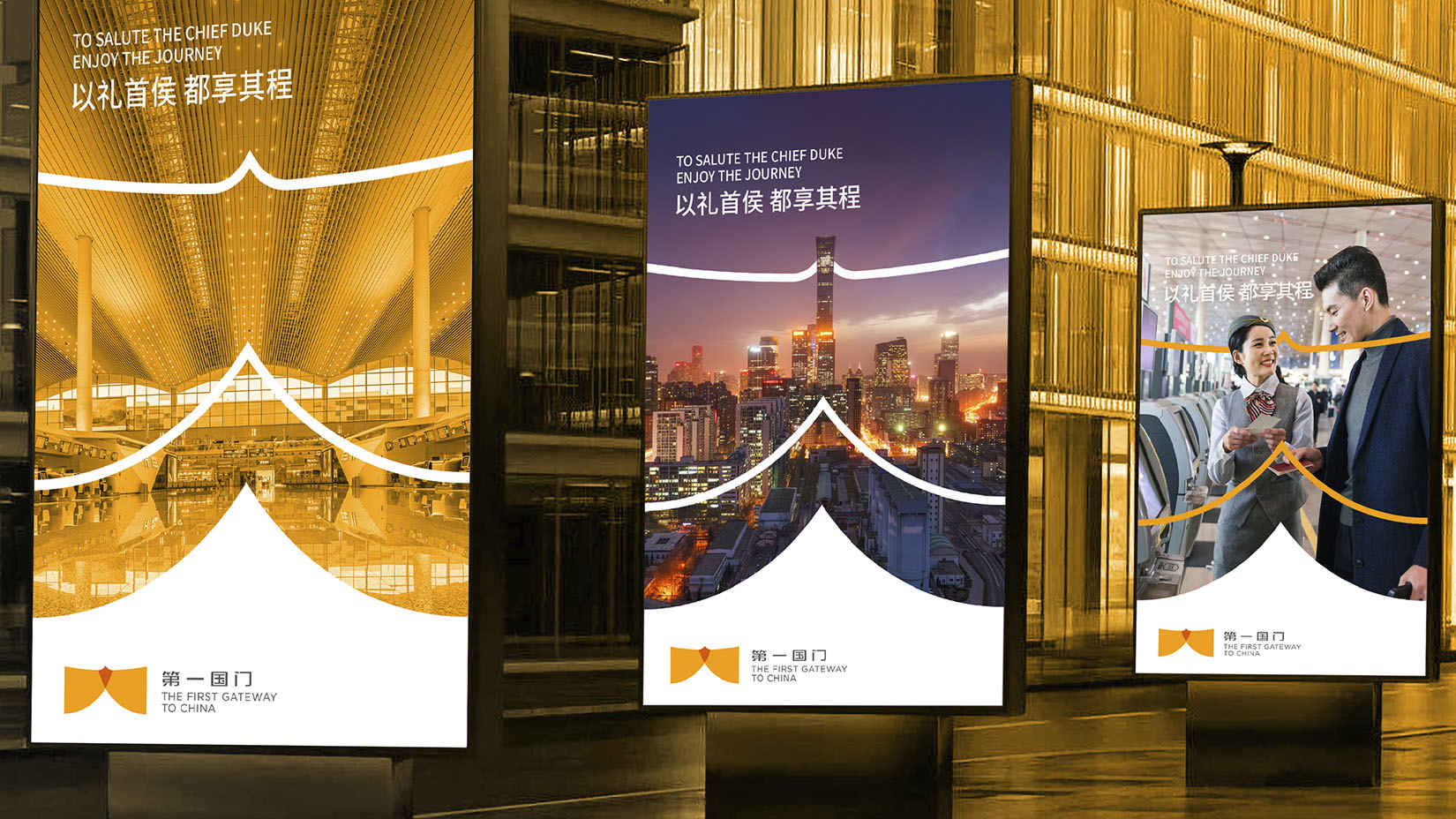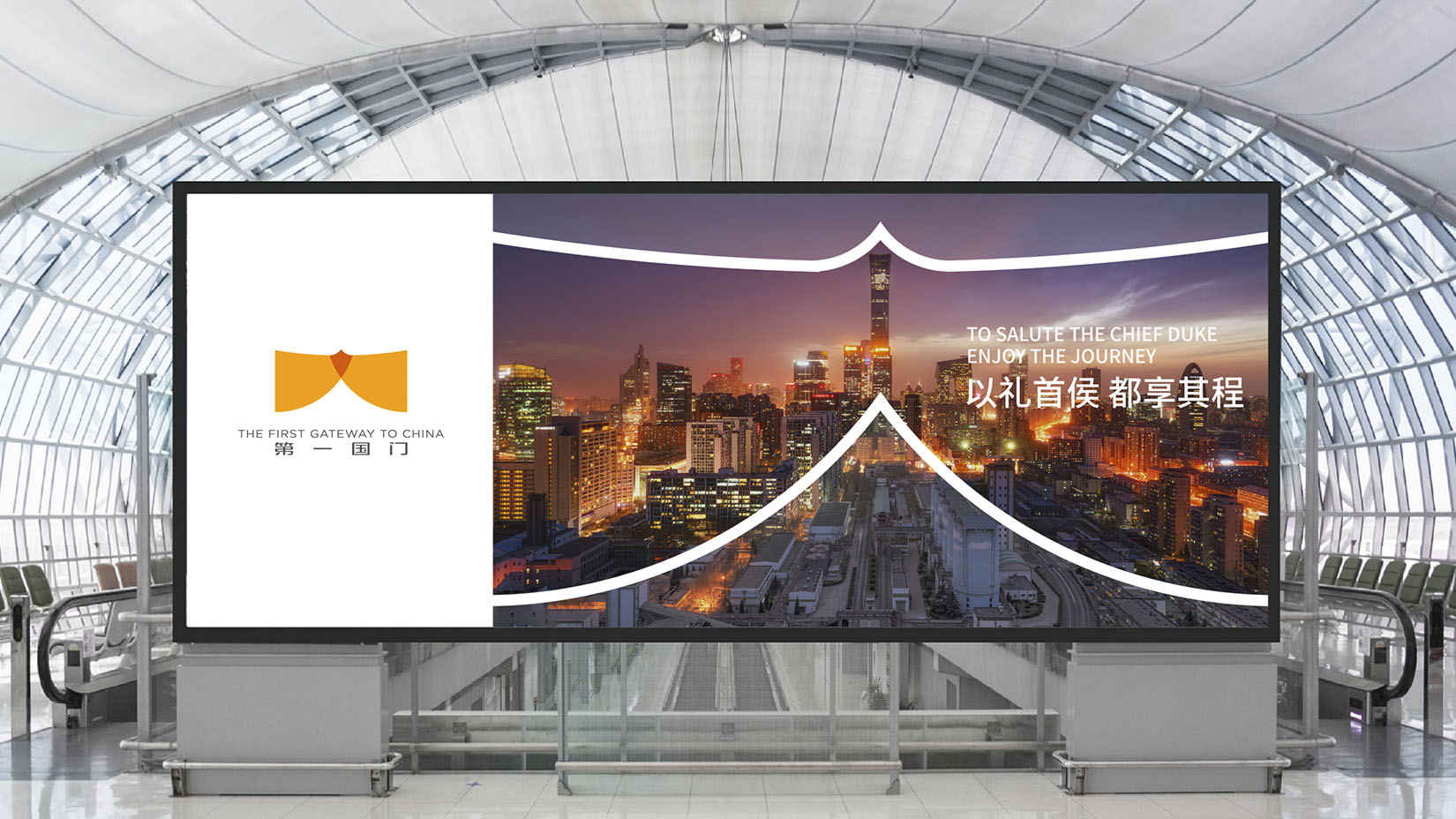视域参与了首都机场第一国门服务品牌视觉概念设计工作,以“大国之门”的形态传达首都机场做好“中国服务”的首倡者和践行者的理念;解构图形,以展臂现袍的东方礼仪形象释义首都机场将作为“礼仪之邦”的典范代表,以东方礼仪做好中国服务的理想追求;图象联想,以“人字形”寄寓首都机场“以人为本”,以多样化服务满足客户多元服务需求,人心和善的服务理念。