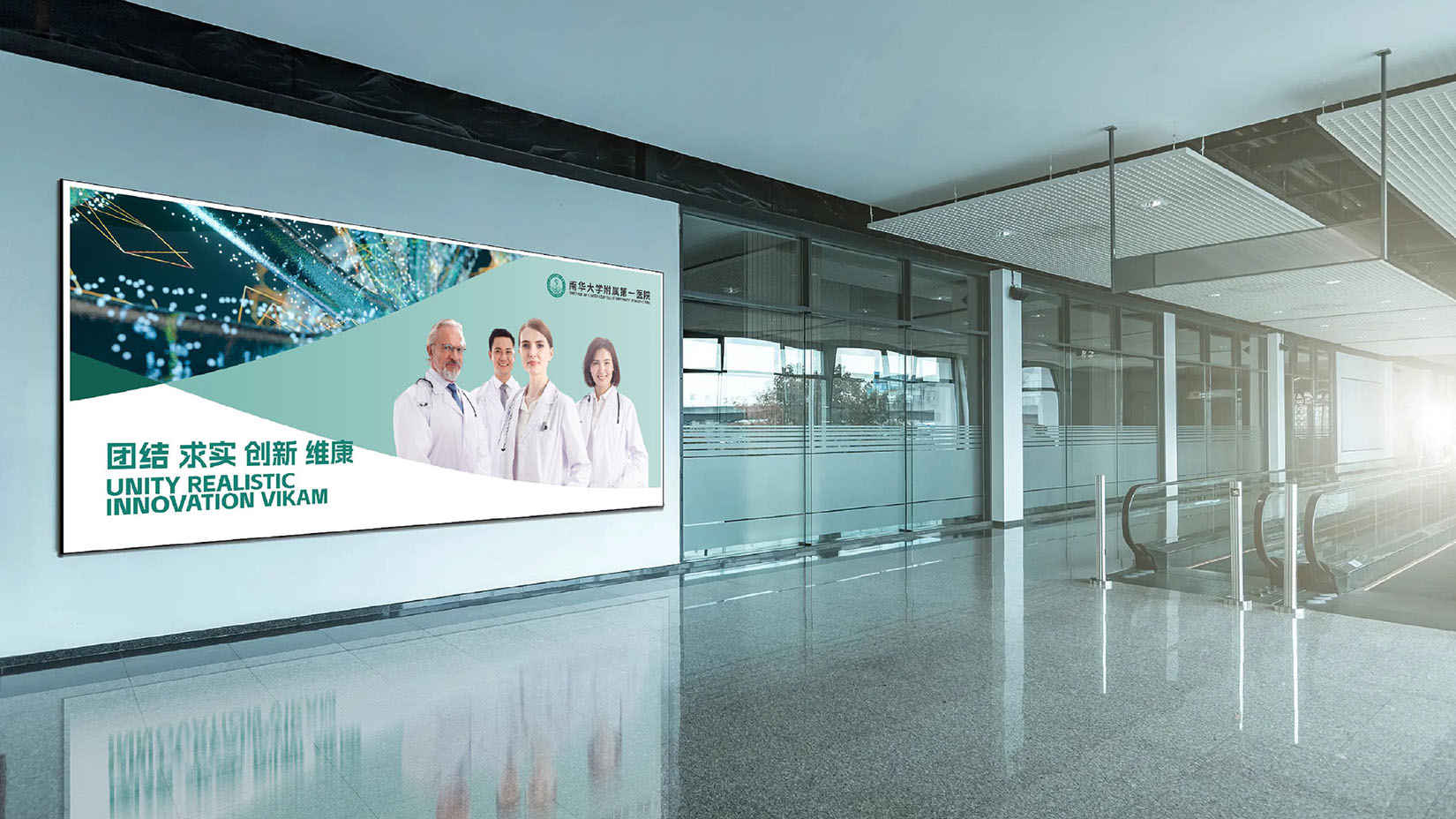 视域参与了南华大学附属第一医院的视觉识别系统升级优化工作,团队提取了蕴含医者圣心的西方蛇杖国际化设计元素,雁文化与莲文化形态的交汇,点衬南华附一的地域性文化和传统文化内涵,寓意医者清心与勇攀医学高峰的崇高追求。通过对视觉识别系统的升级优化,为南华大学附属第一医院打造超级感知与超级活动为一体的品牌超级体验。