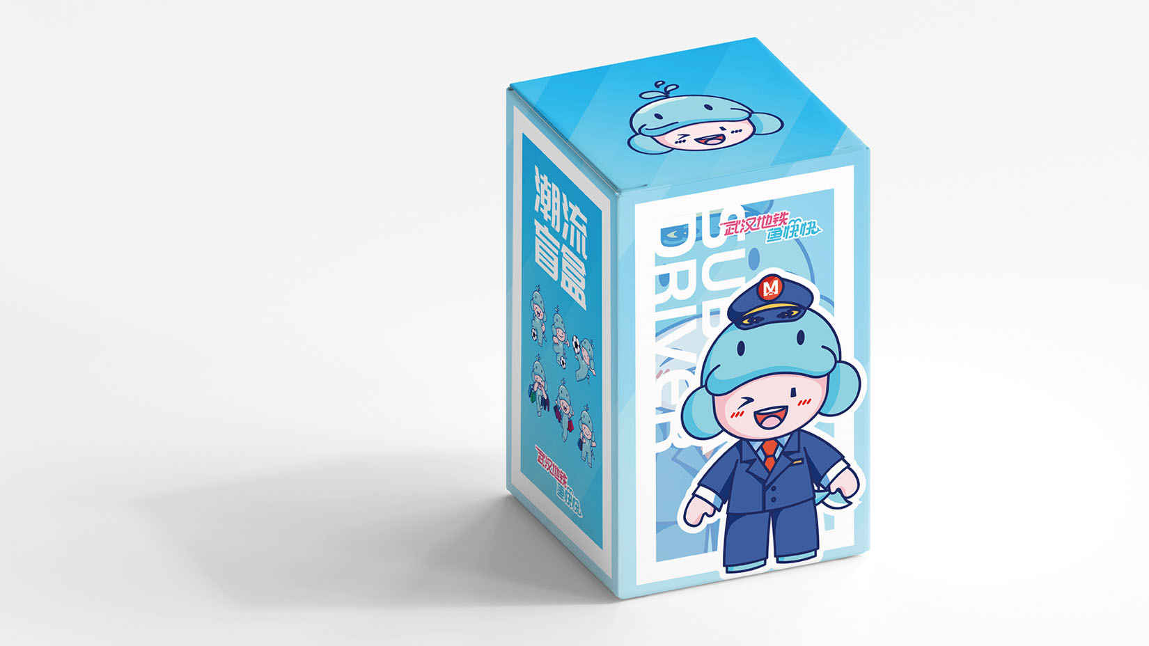 视域参与了武汉地铁IP形象优化的设计工作,延续原版形象进行优化升级,以更加灵巧活泼的形态还原长江江豚的本真,使其更具有亲和力。年轻化的IP形象增强了人们与其的互动性,满足了现代IP形象的社交属性。在武汉地铁的手办设计中,整体形象以穿着地铁特色服饰呈现,头顶的帽子装饰着武汉地铁LOGO和寓意“穗穗平安”的麦穗纹,强化了IP形象的归属感,传递了品牌的内涵。同时搭配红色领带,展现了品牌热情服务的理念。