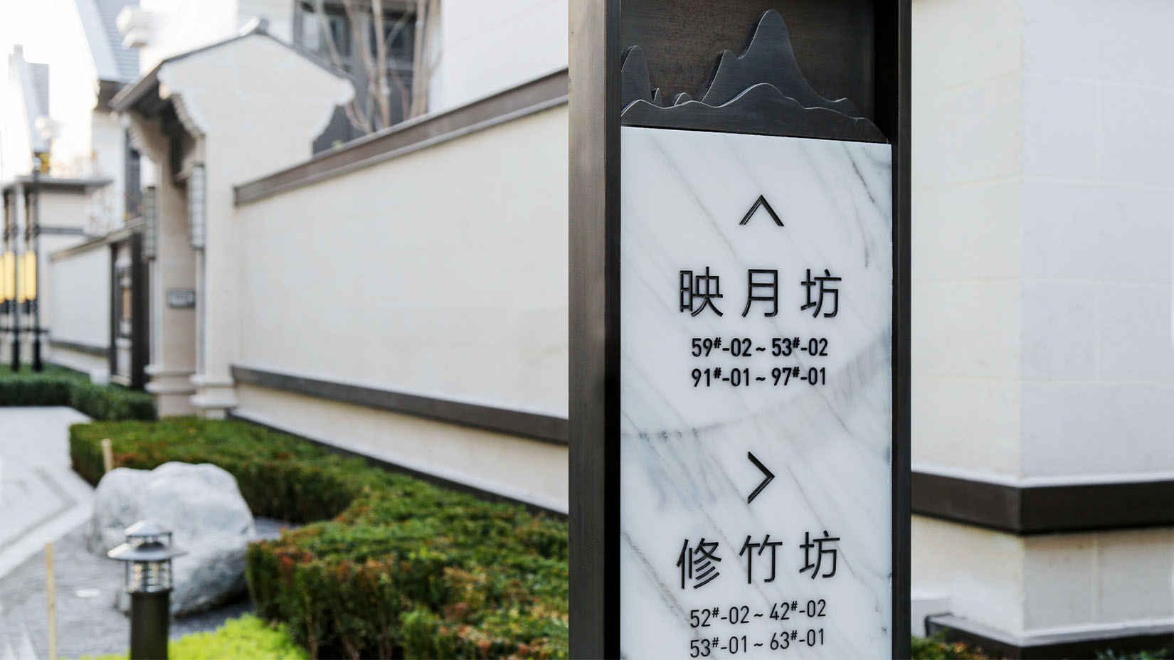 视域承担北京优山美地D区的导向系统规划设计工作,标识除导向功能性的基础设计外,对项目的牌匾及各街巷名称及图案进行单独设计,让中式的山水园林充满了笔墨书香的文化气息。