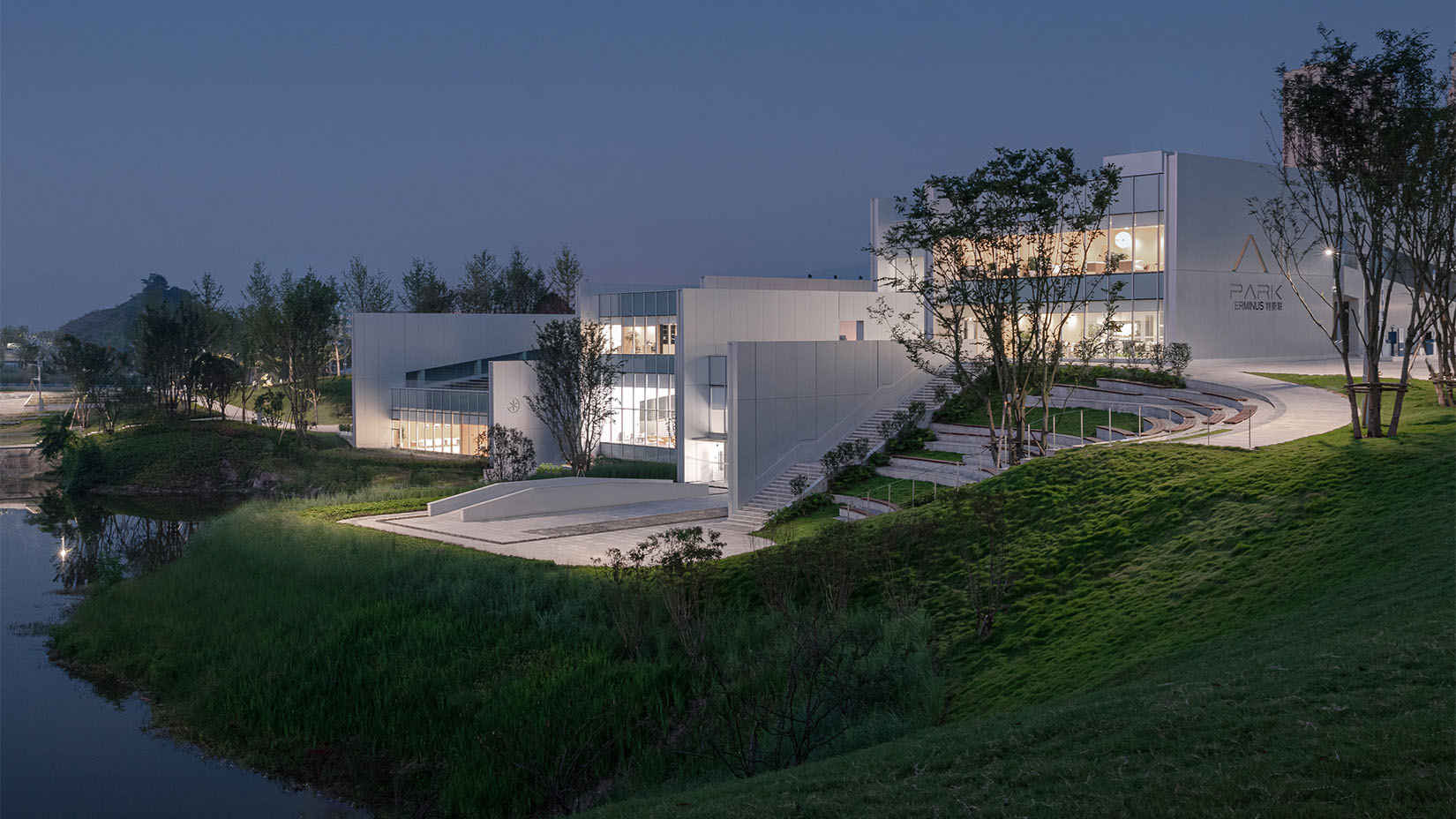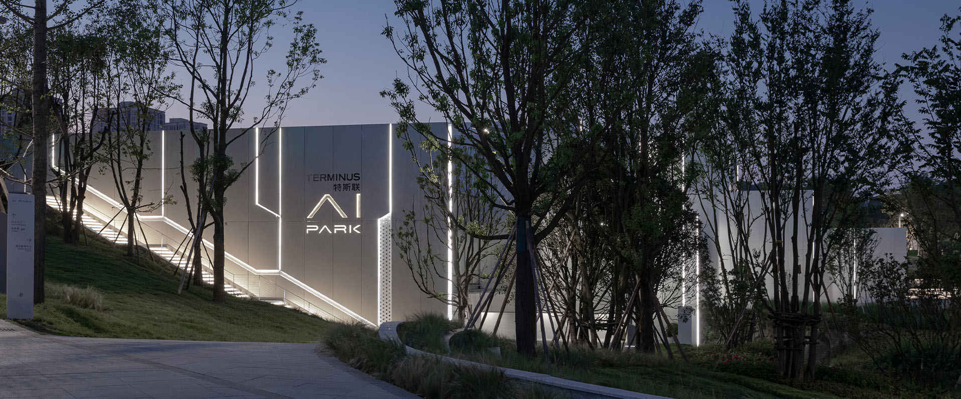 特斯联(TERMINUS)AI PARK是一座集中展示人工智能+物联网(AI+IoT)技术的智慧园区,位于重庆市西部的山峦湖泊之间。建筑的墙体犹如电路板垂直嵌入到蜿蜒的湖堤之上,将建筑的硬朗与自然的柔美融为一体。