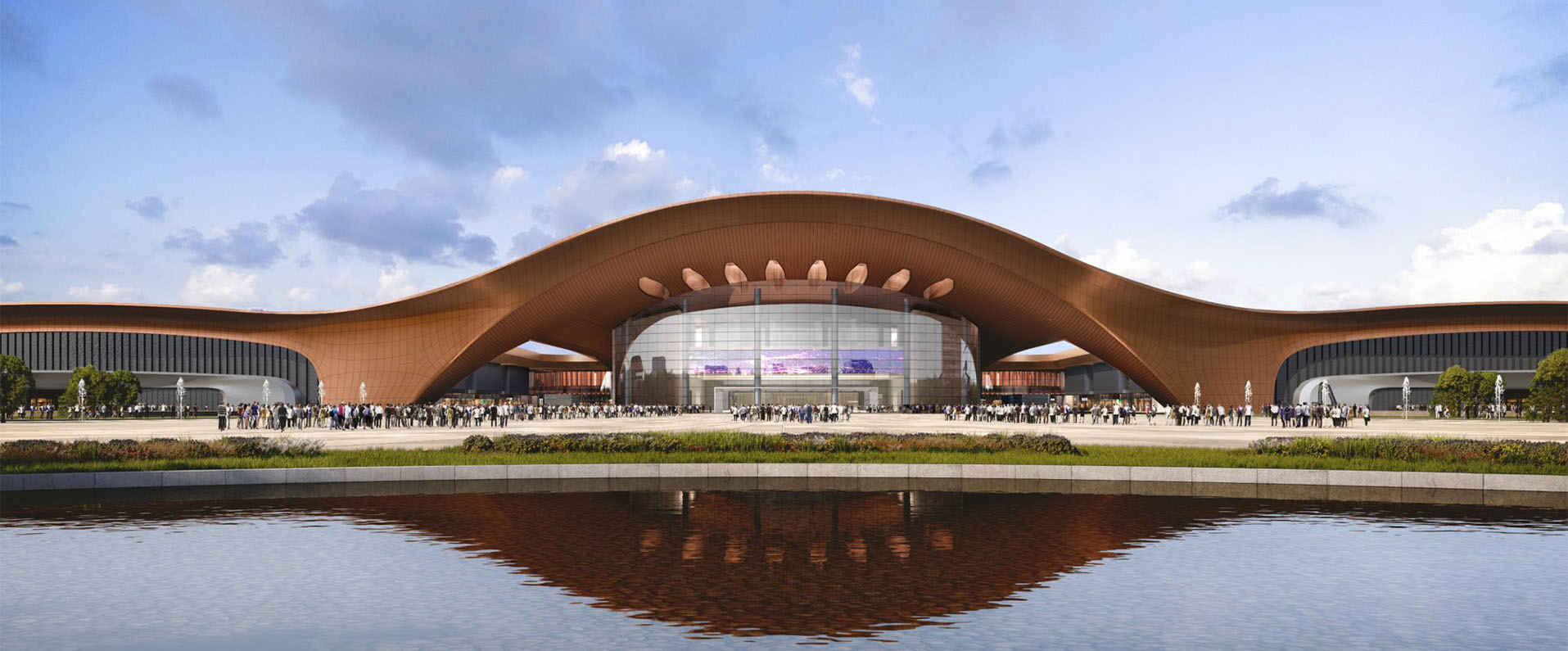 北京新国展二期位于顺义区首都国际机场附近,总建筑面积约61.5万平方米,展览面积超25万平方米,是集展览、会议、办公、商业等多功能于一体的现代化建筑群。展区规模宏大,单馆面积居国内之最,会议设施超5万平方米,配备五星级酒店及便捷餐饮等先进配套设施,致力于满足国际大型展会的需求,助推北京成为国际消费中心城市。