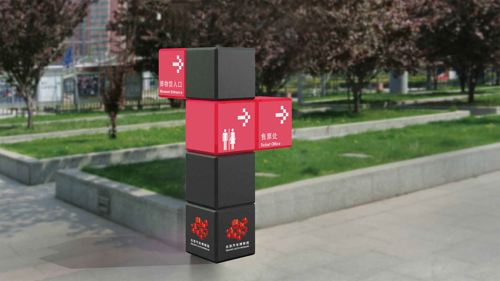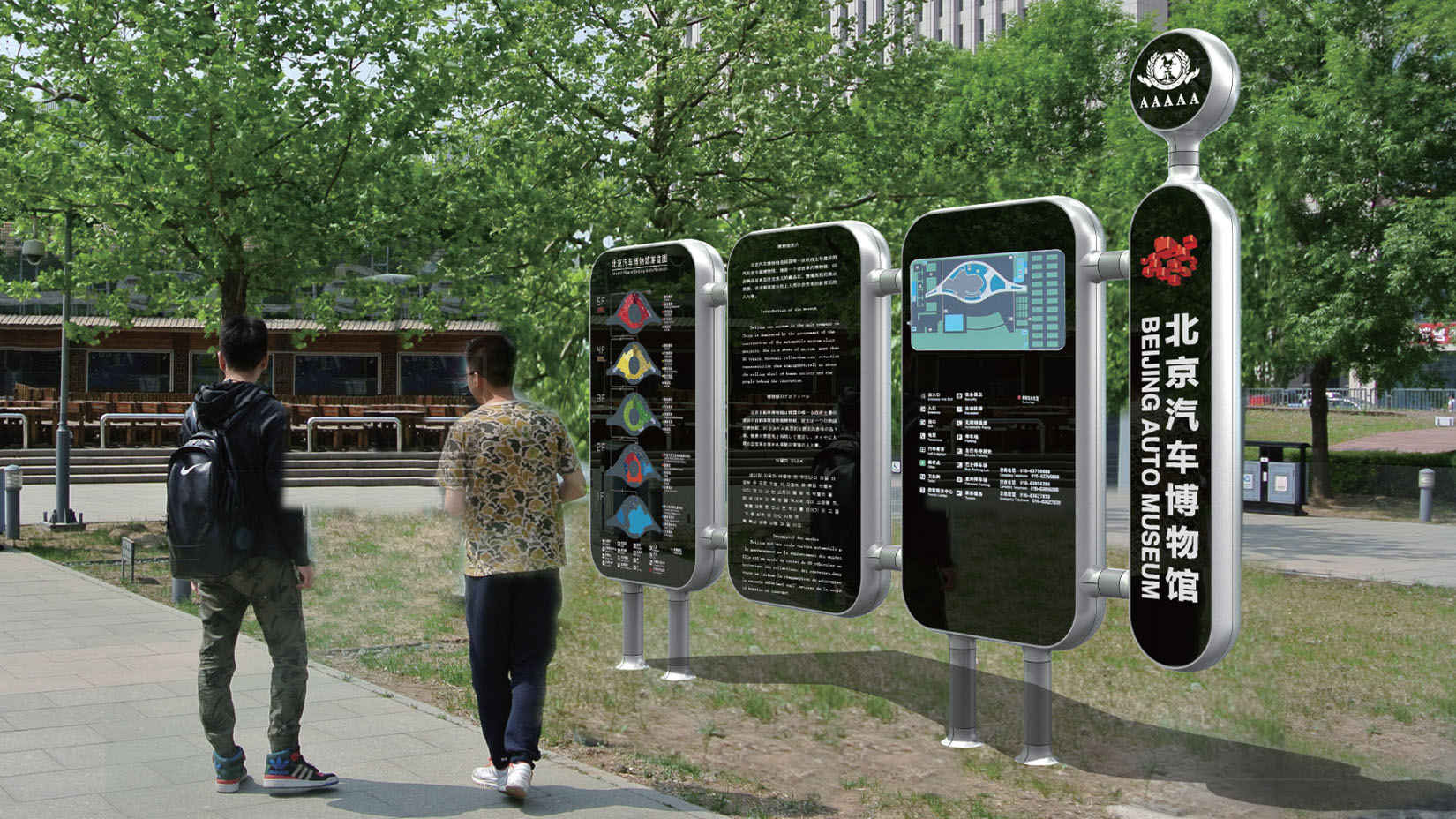视域承担北京汽车博物馆的导向系统规划设计工作,标识设计以汽车的流线造型为设计理念,打造一体化、模块化、未来感的视觉形象,以及内容丰富、清晰易读、方便更换的功能设计。