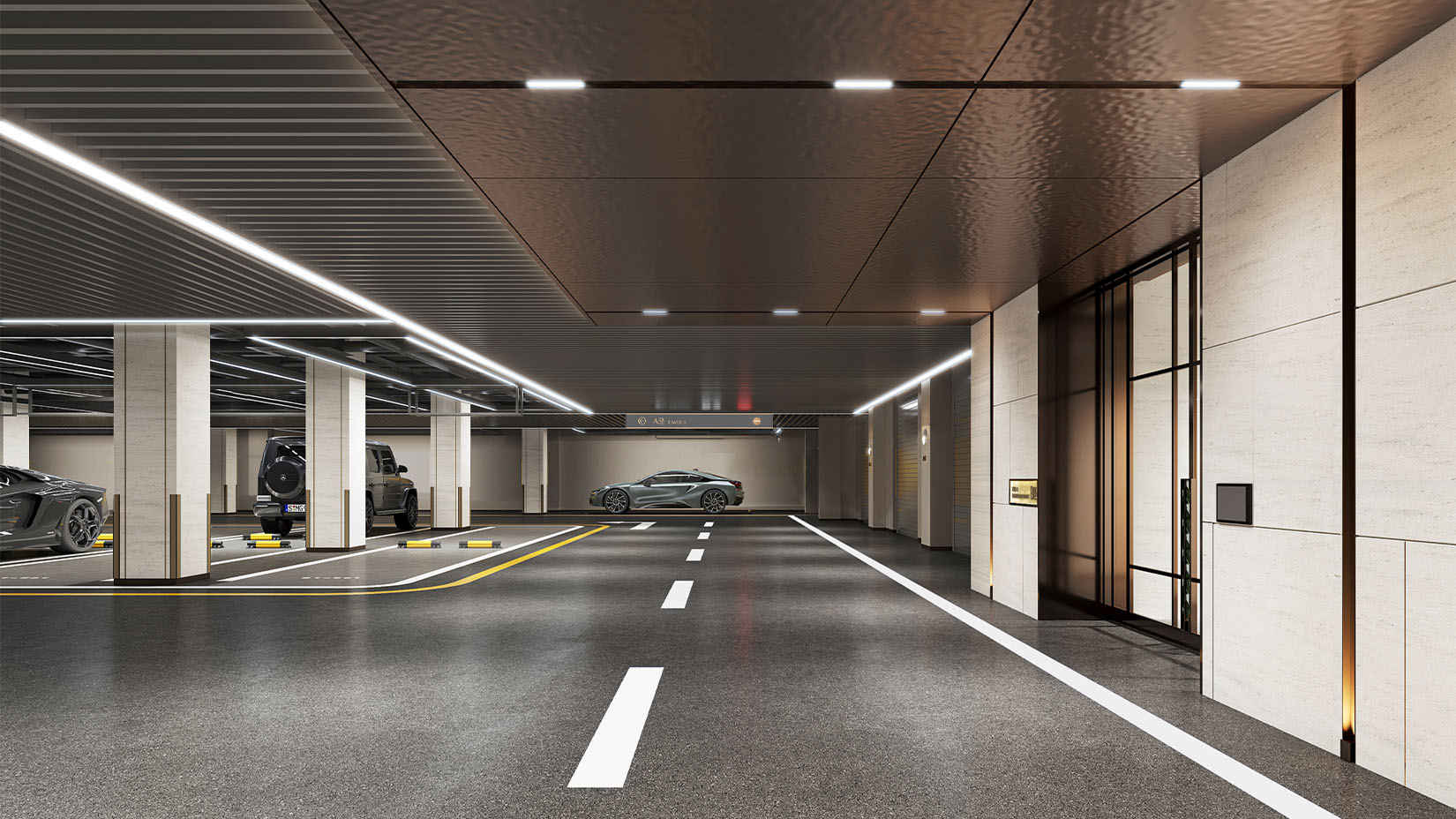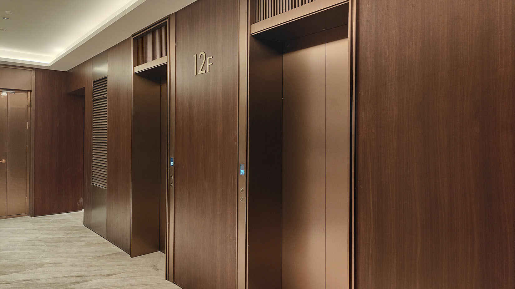 视域承担唐山万润•樽的导向系统规划设计工作,设计取其建筑的形与意——中国式对称,对称元素的摄入反映着中国人独有的阴阳平衡概念,是一种庄重的经典美。同时融入曲线变化,通过经典深暖灰与铜色金属搭配,体现项目的独特品质。平面系统设计从VI体系中延展,提取LOGO中的“O”和“E”, 巧妙的通过推演转化成为专属于万润•樽的图形符号设计。