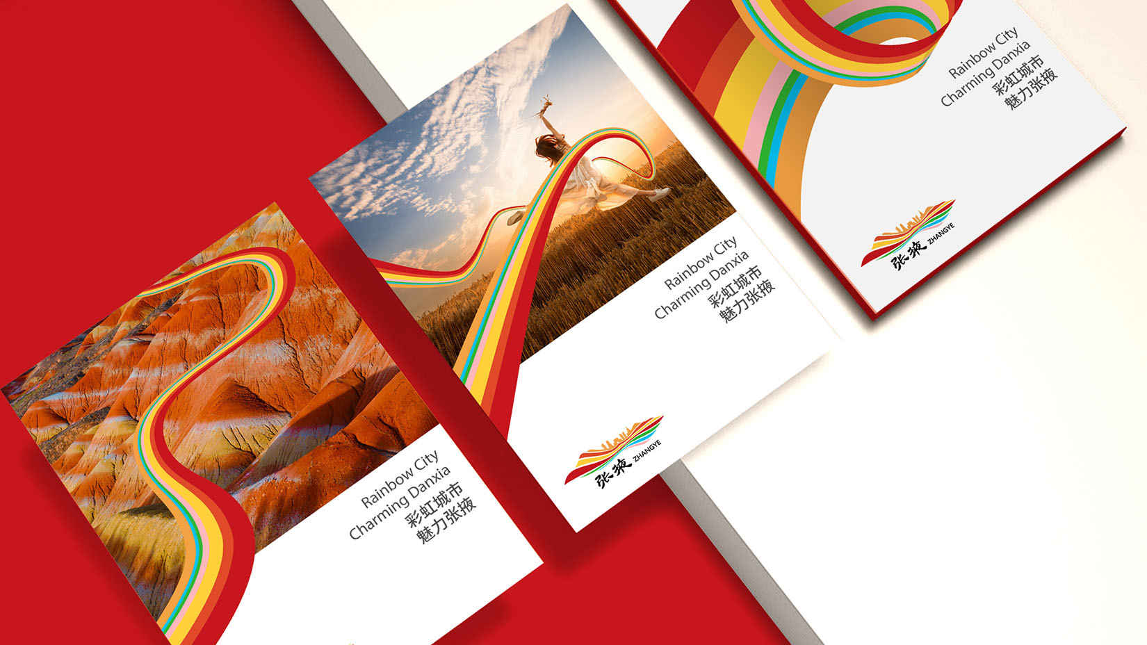 视域参与了张掖彩虹城市品牌标志的设计工作,采用张掖最具代表性的七彩丹霞地貌,以展现其城市的独特风情。品牌标志以开阔的形式展现张掖城市的胸襟与气度,表达张掖市渴望吸引游客与人才,推动经济发展的美好愿景。团队选取了历史和现代最具代表性的景观作为城市影像,以展现张掖城市的独特魅力。标志以彩虹色彩寓意张掖坐拥多种资源的优势,体现张掖立足资源禀赋,传承历史文化,发展城市经济,创建彩虹城市的远大目标。