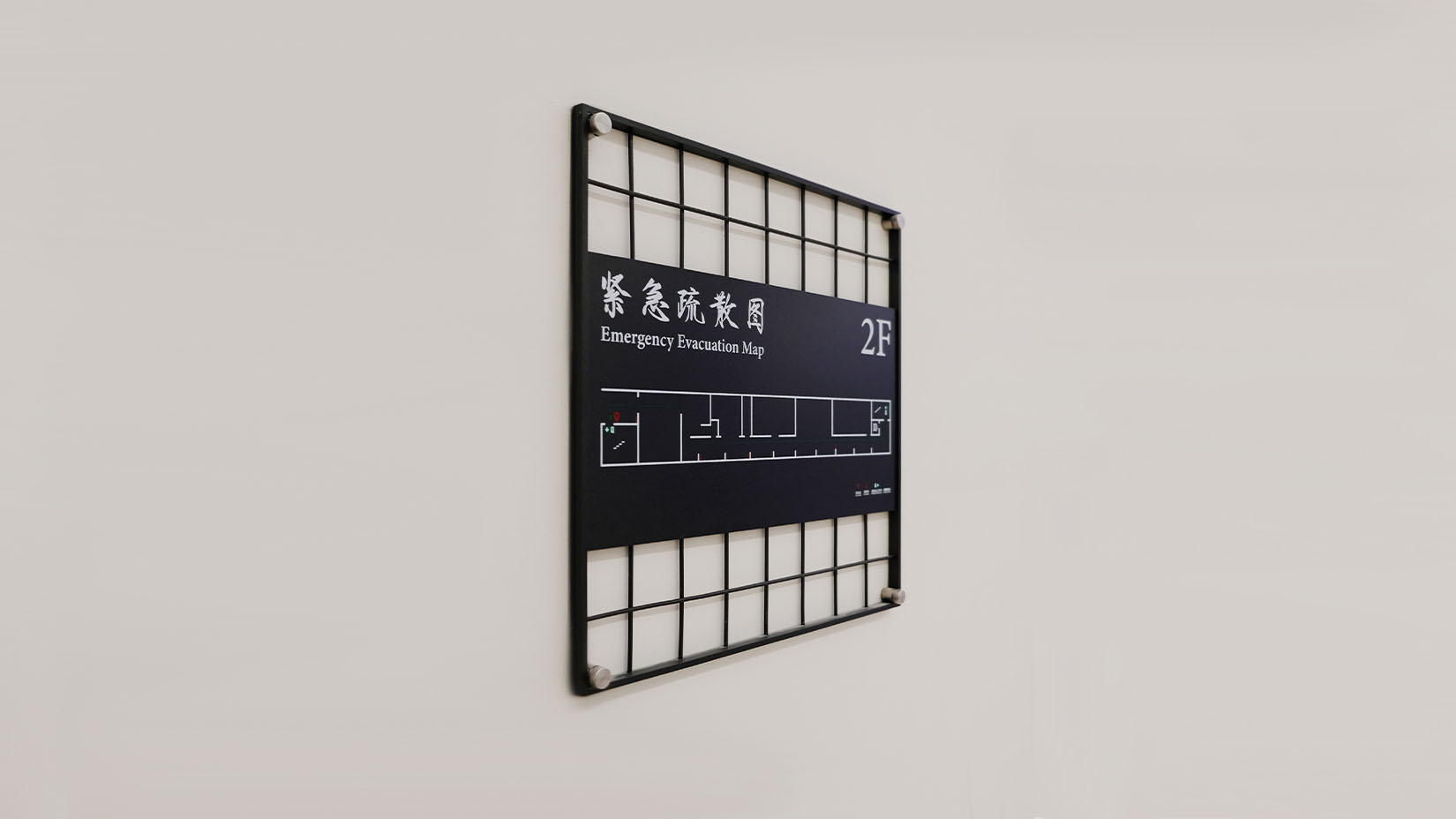 视域承担建筑研究基地整体空间的导向系统规划设计工作,设计灵感源自于建筑制图中的经典元素——柱网坐标纸,通过独立单元重复组合形成模块化标识形体。同时融入中国传统文化的重要组成部分——瘦金书,作为标识信息字体。瘦金书的灵动飘逸与网格结构的理性特质相融合,实现现代工业风与东方文化的精彩碰撞。