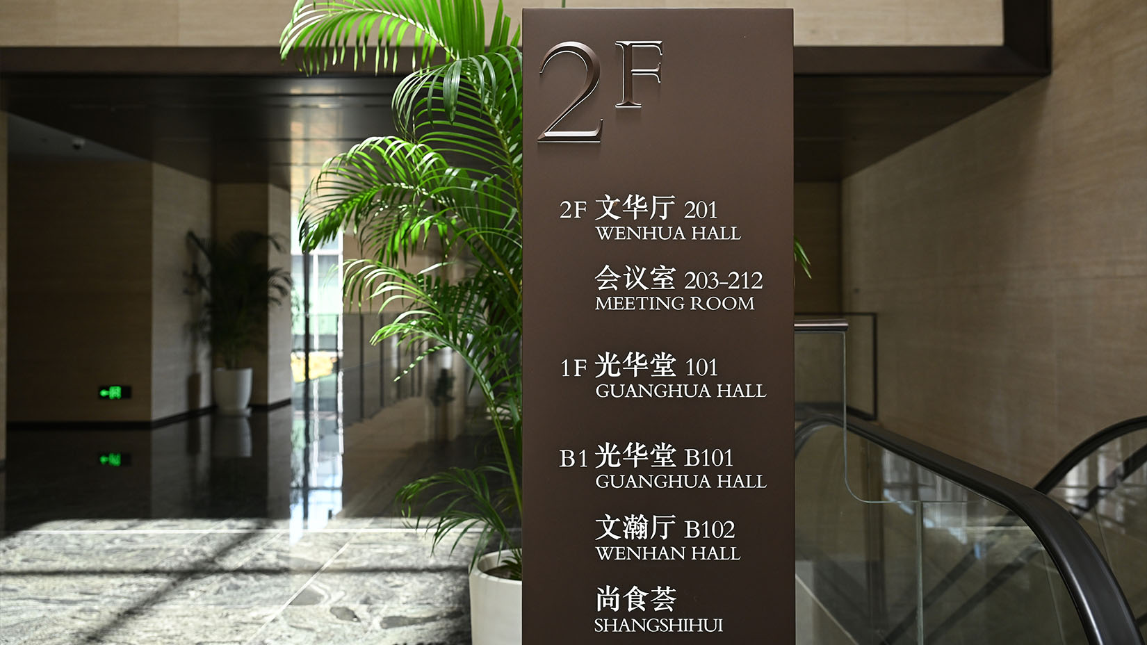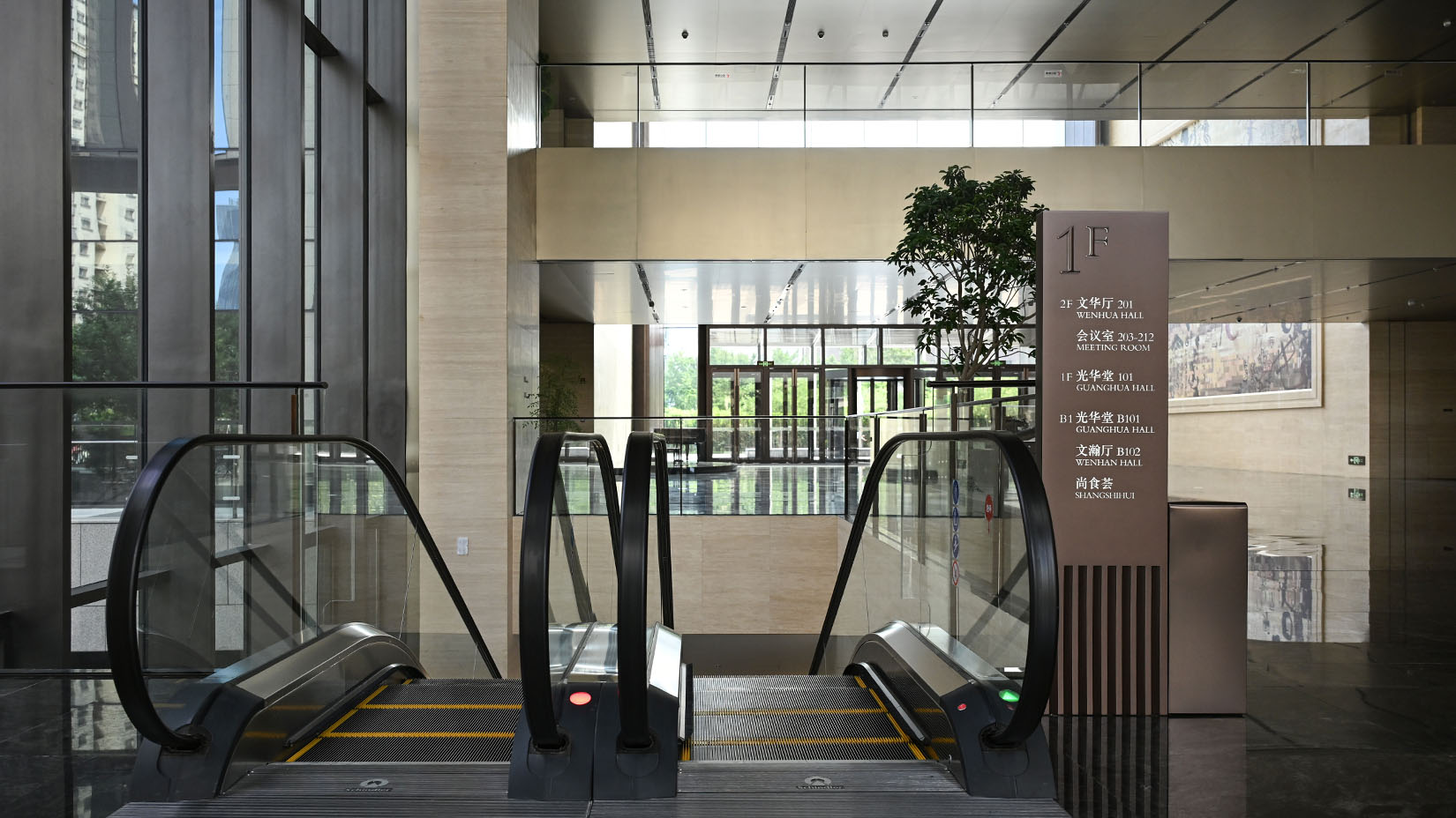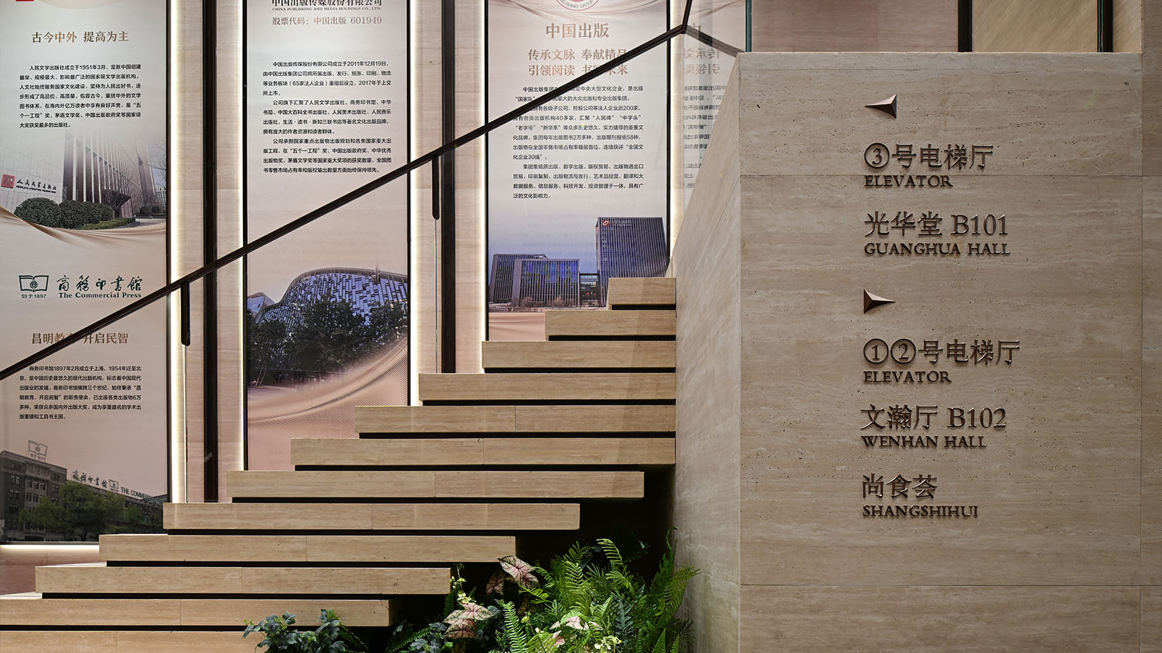 视域承担中国国际出版交流中心的导向系统规划设计工作,延续“金书玉匣”的理念,遵循项目庄重大气的设计风格,融合建筑特色与企业文化,以现代简洁的设计手法,选用适配材料,实现标识系统与空间环境的和谐统一。
