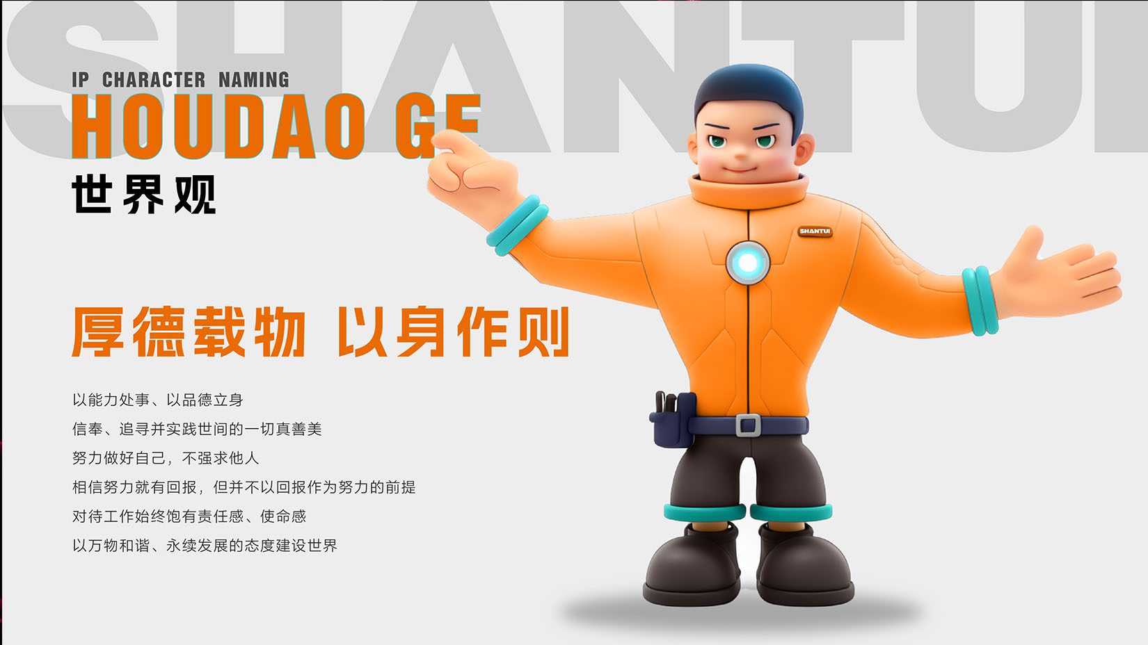 视域参与了山推股份IP形象的设计工作,以企业核心理念“勇往直前,一路厚道”为创意起点,从人的角度出发,以山推集团血液里流淌的闯劲儿为出发点,塑造出有血有肉、敢闯敢干的朴实山推人形象。