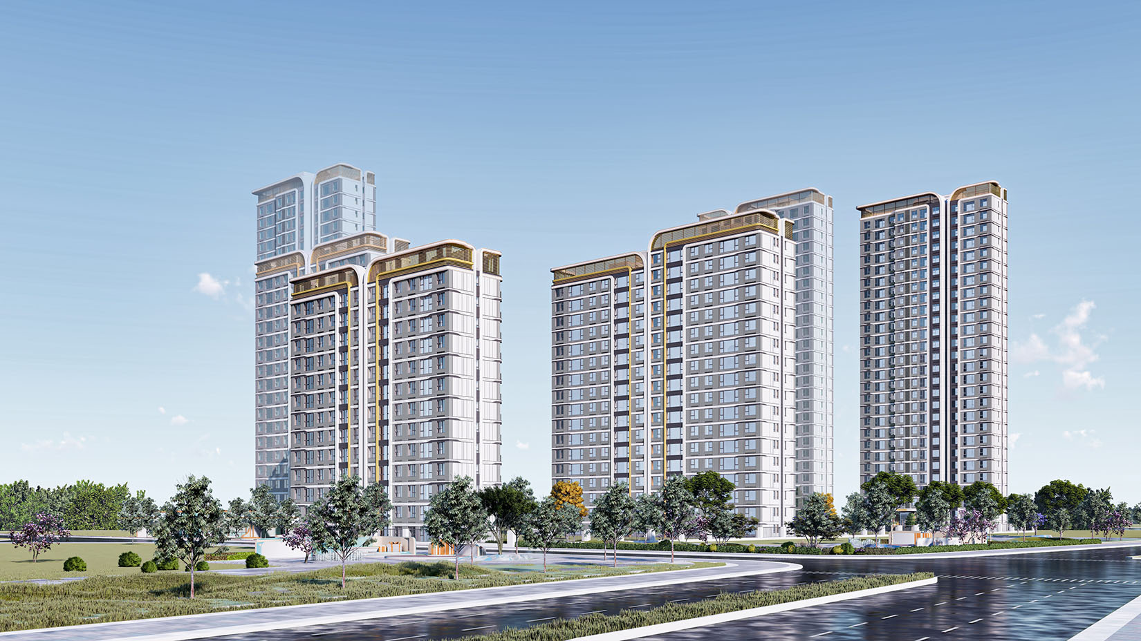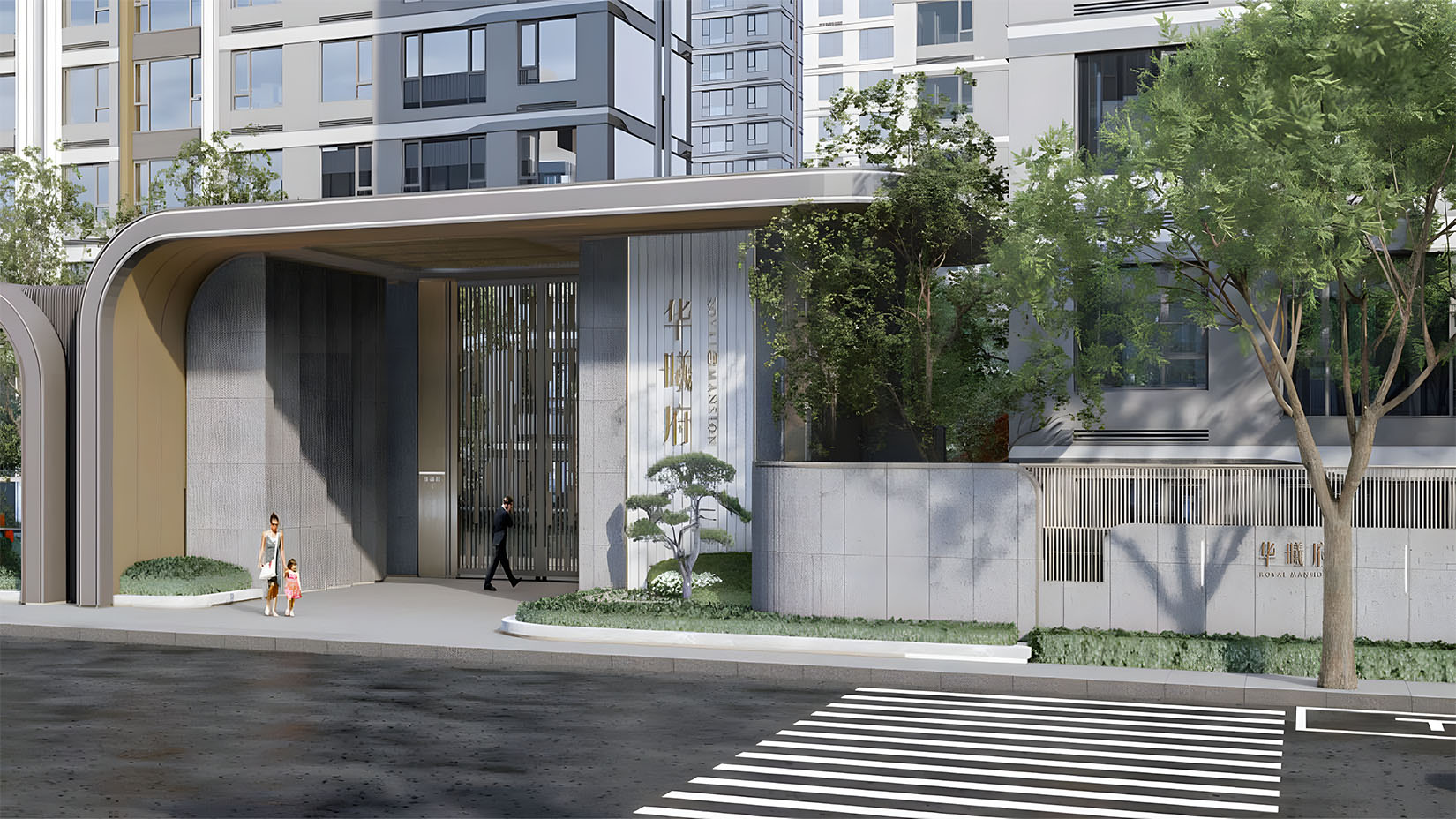 北京华曦府位于北京市丰台区卢沟桥街道小瓦窑村,地处西四环与西五环之间,总建筑面积约5.9万平方米,规划有8栋10-27层住宅楼,总户数517户。建筑设计取意“高山流水”,以弧形倒角与横向线条为手法,选用铝板、金属漆、涂料等材质,打造兼具国际气质的高端住宅。立面通过材质组合与线条韵律,形成流动舒展的建筑形态,实现自然意境与现代美学的融合。